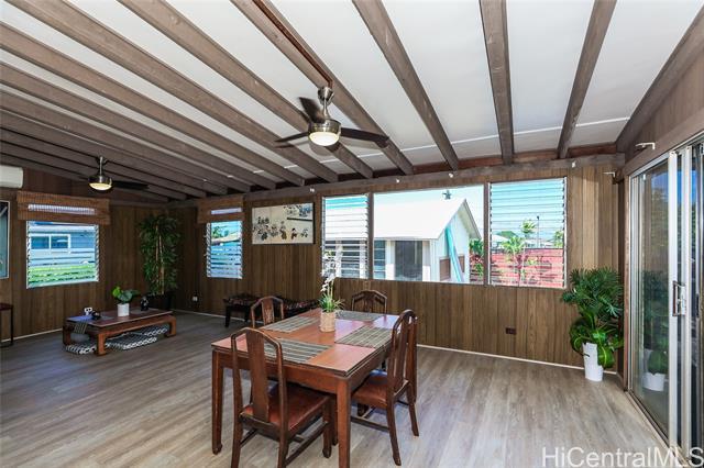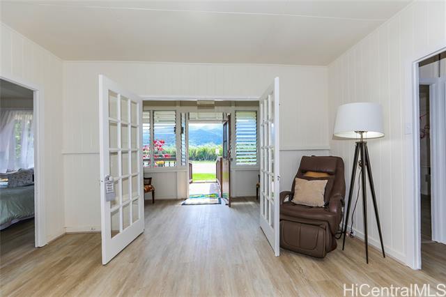 Just Listed! Waialua - Ranch Camp community with a front row seat to the breathtaking views of Mount Kaala that will never grow old. This legacy property, a 4-bedroom, 1-bath, is now coming to market for the first time in decades. Walk through the French doors into a great living space with views of both the front and back of the home. Spacious updated kitchen with a new stainless appliance package, new base cabinets, quartz countertops, and backsplash. Floors have easy-care luxury vinyl planks through out which will mean more time at the beach. Home is also walking distance to schools and a short drive to historic Haleiwa Town. The 4th bedroom is currently used as a dining area, multi-purpose room. Having an indoor laundry is a plus, and a very classic gravel floor barn/workshop is amazing to behold. Mature producing fruit trees include grapefruit, a super sweet orange tree, and also a pear tree. A private, fenced backyard is a great place to enjoy, maybe start creating your own garden or flex space. Start your North Shore country living at a great price. Open Saturday, February 7, time: 12-4 pm