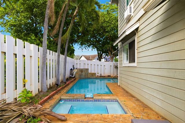 Welcome to this serene oasis in Ewa Gentry Lofts! This delightful home features: - Private Swimming Pool: Imagine relaxing in your own private pool, surrounded by lush greenery. - Tranquil Living: Enjoy peaceful days and nights in this well-appointed 3-bedroom, 2-bath home. - Solar Power: Equipped with 14 owned PV panels, you’ll benefit from sustainable energy. - Low Maintenance Fees: Keep life simple with minimal upkeep costs. - Split A/C Units: Stay cool and comfortable year-round. Your very own slice of paradise awaits!