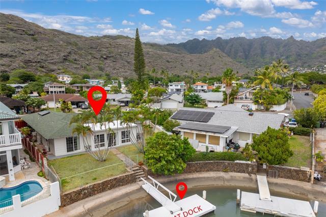 Current loan has an assumable 2.75% loan for eligible VA Buyers. SINGLE LEVEL, LARGE YARD SPACE, SHOWS PRIDE OF OWNERSHIP - EXCELLENT VALUE for MARINA FRONT living in the highly sought-after Spinnaker Isle neighborhood of Hawai‘i Kai! This home offers an attractive floor plan with the primary suite privately positioned on one side of the residence and two additional bedrooms on the other, creating comfort and privacy for guests or family. The home features a remodeled kitchen, updated bathrooms, lighting, ceiling fans, solar water heater, new W/D and fridge, and split A/C in every room. With direct marina frontage and your own boat dock, enjoy the ultimate Hawai‘i Kai lifestyle—take your boat to nearby restaurants and shops, paddleboard, kayak, or fish right from your backyard. A spacious yard and peaceful views provide an idyllic backdrop for island living. Complete with a two-car garage and located close to Hawai‘i Kai’s dining, shopping, groceries, and schools, this home presents a rare opportunity to tailor and create your dream marina-front retreat in one of the community’s most desirable waterfront enclaves. Current loan has an assumable 2.75% loan for eligible VA Buyers.