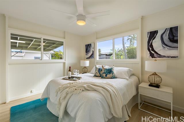 Newly renovated single level home in tranquil Pohakupu, Kailua neighborhood. This charming 3 bedroom/1 bath home features an open concept with modern touches: a beautiful kitchen with new cabinets, quartz countertop, an Island and new kitchen stainless steel appliances, new flooring throughout with luxury vinyl planks, new bathroom, new double paned windows, new double paned sliding door, new washer and dryer, and new paint in and out etc. Situated on spacious 7,520 sq.ft. of level land, this move-in-ready home has extraordinary potential for future expansion. Conveniently located within minutes to Kailua Town with an array of shops and restaurants, the famous Kailua and Lanikai Beaches, hiking trails and many more, this is truly an ideal place to enjoy a Hawaiiana lifestyle!