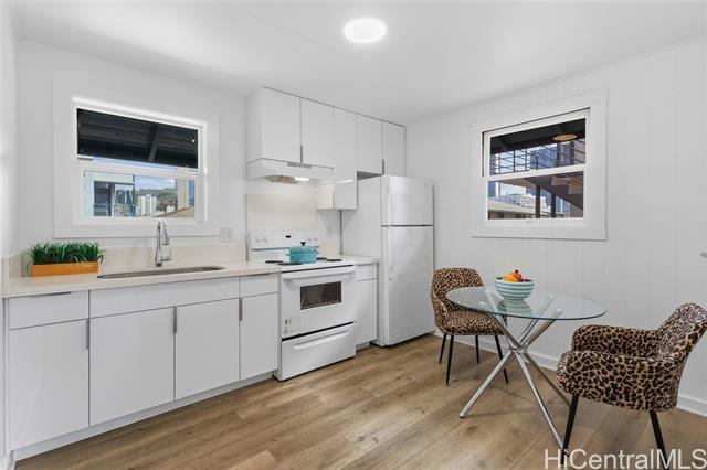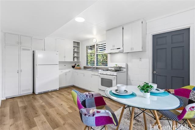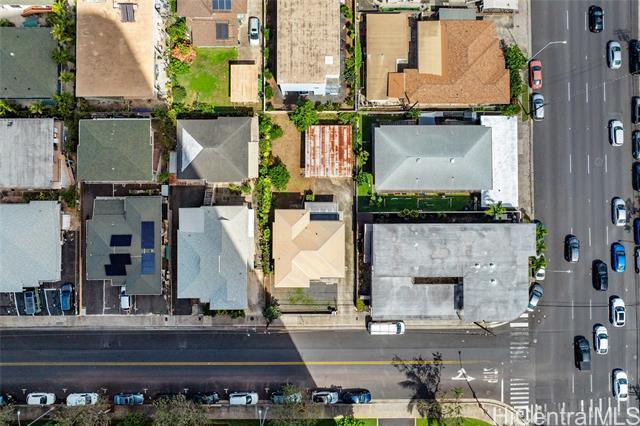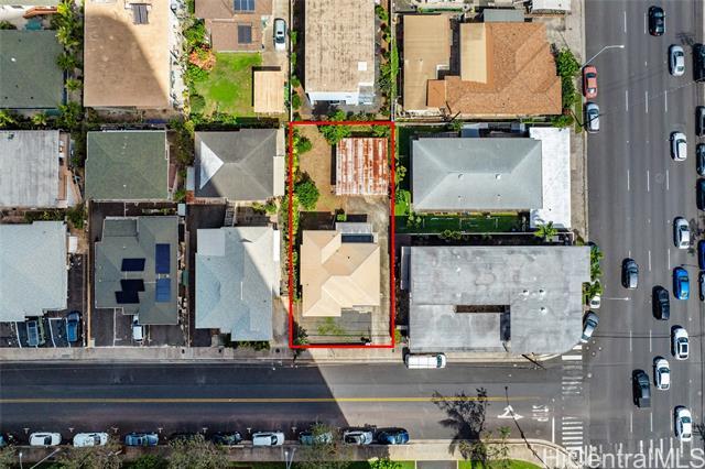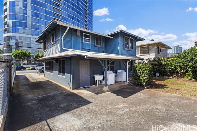 Located in the highly desirable Kaka‘ako Development District, this unique property presents outstanding upside with future income potential. Zoning allows for select commercial uses—please refer to the MLS Land Use attachment for permitted development options. Currently configured as a 6-bedroom, 2-bath single- or multi-family home, the residence features a durable tiled lower level and a flexible two-story layout with independent entrances, just one block from Kapi‘olani Boulevard.The upper level offers three bedrooms and a full bath, highlighted by classic plantation-style windows. The lower level includes an additional three bedrooms and full bath, ideal for extended family living or separate occupancy. Both levels include full kitchens, with the upstairs kitchen recently updated with new countertops and upgraded cabinetry. Bathrooms on each floor feature refreshed porcelain tile showers and flooring.A generously sized backyard provides an excellent space for gatherings or outdoor enjoyment. Additional features include a covered carport and on-site coin-operated washer and dryer. Conveniently situated near Ala Moana, Ward Village theaters, shop.