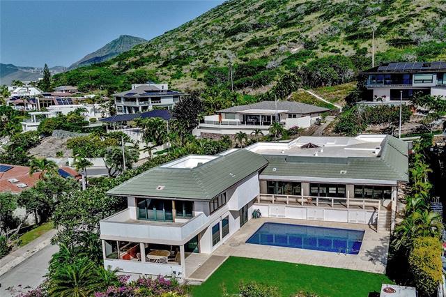 Beautiful Diamond Head, ocean and mountain views from spectacular custom-built home. Spacious living area and an open design kitchen with hardwood floors. Home has 4 bedrooms with 3.5 baths plus a home office area. Abundant closet storage and 3 lanai areas. Large downstairs suite with full bath, has its own sitting area and wet bar. Amenities include a 24hr monitored home alarm system, video security, outdoor courtyard, large pool, and entertaining area. Two car garage with storage and additional driveway parking available.