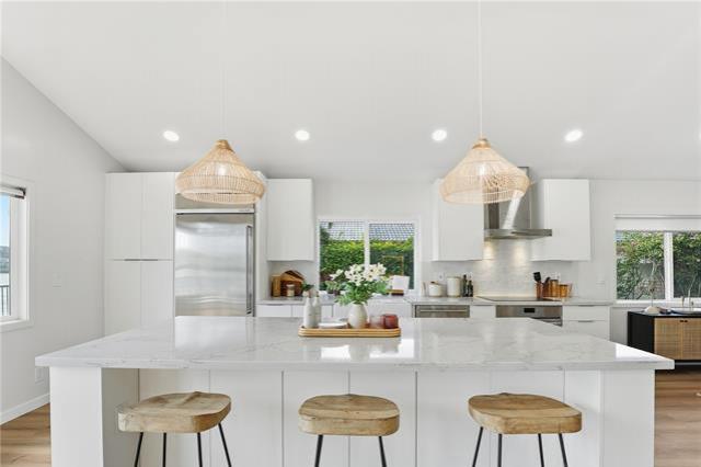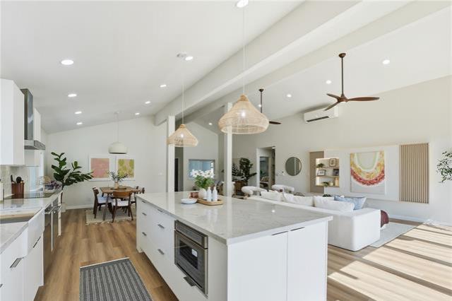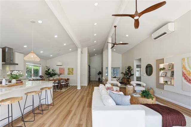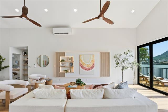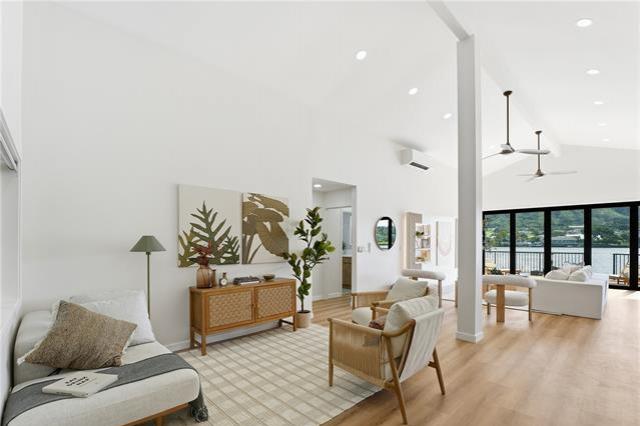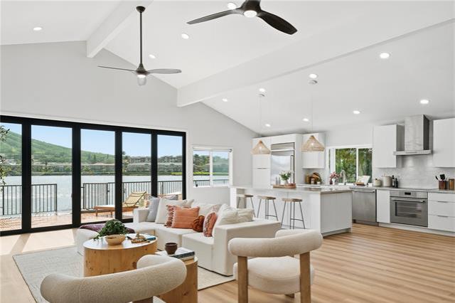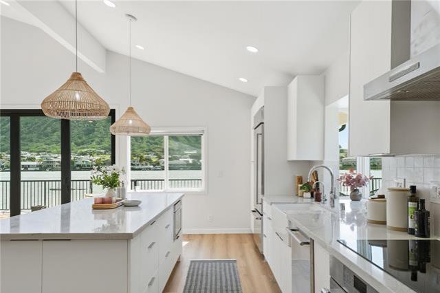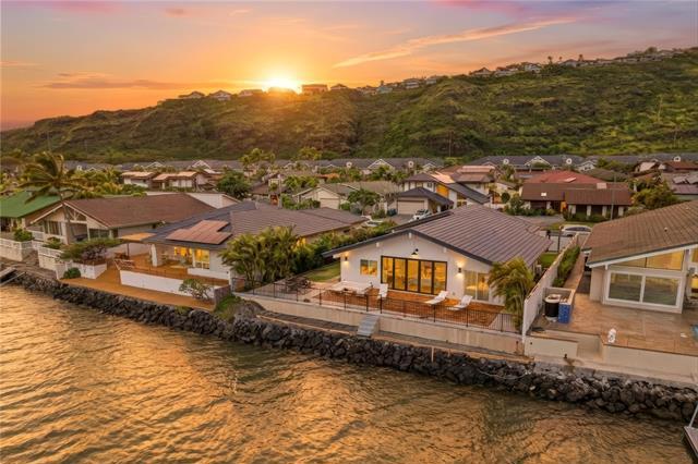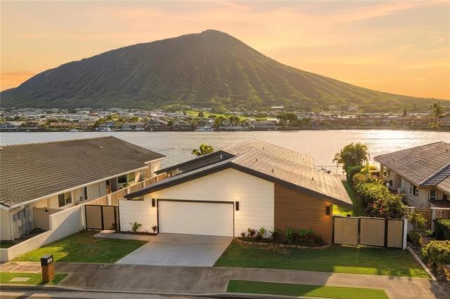 Where modern design meets the rhythm of waterfront life in Hawai?i Kai. This thoughtfully reimagined 4-bedroom, 3-bath residence offers over 2,000 SqFt of open living space designed to inspire. Vaulted ceilings soar above wide-plank floors as natural light pours through expansive glass, creating an immediate sense of warmth and refined sophistication. Every finish reflects intention, and every detail enhances daily living. At the heart of the home, a statement kitchen captivates with waterfall quartz, bespoke cabinetry, and premium appliances, framed by sweeping mauka-to-makai views. Expansive Western Systems sliders fully retract, unveiling a marina-front lanai designed for sunset gatherings and tranquil waterfront mornings. Two private primary suites offer spa-caliber baths adorned with curated tile and modern fixtures, each with direct outdoor access for a seamless retreat experience. Thoughtful system upgrades provide modern peace of mind, while lush landscaping and dock-ready frontage invite the ultimate marina lifestyle. Near world-class hiking at Koko Head and the finest amenities of Oahu, this residence embodies waterfront living elevated to art.