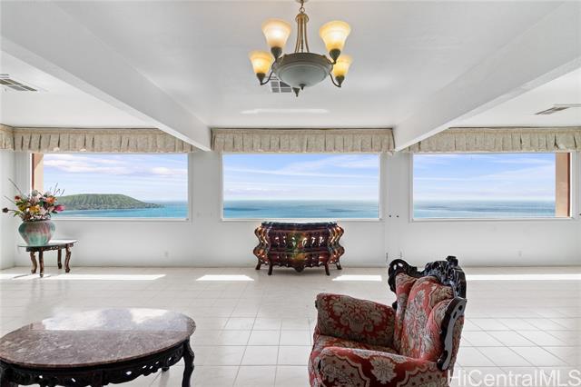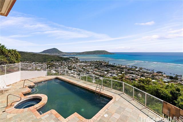 View! View! View! This spectacular view home in lower Hawaii Loa Ridge features large 12,631 square foot rim lot with 4,132 square foot home and big swimming pool. Walk into open floor plan with living, dining, kitchen on main level looking out to beautiful views plus one bedroom on the main level. Primary bedroom upstairs opening out to lanai with ocean and Koko Head views. Two additional bedrooms and family room on lower level. Views from every level ... Convenient with plenty of driveway parking space. Priced below appraisal $ 3,682,800 - A Great Value ! Open House Sunday, March 15 , 2 to 5 pm