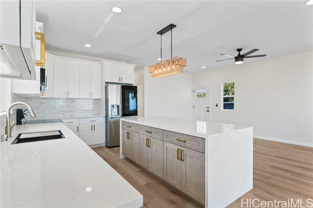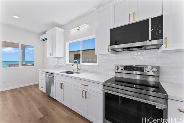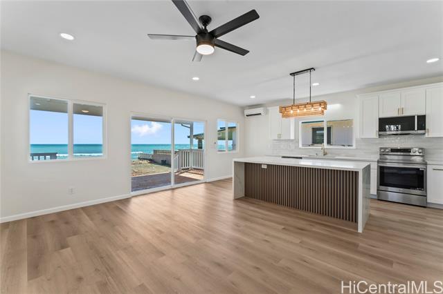 Welcome to this fully remodeled, charming oceanfront property located in Ewa Beach, featuring 3 bedrooms and 2 bathrooms. This home has been meticulously updated with a new kitchen, new appliances, and new flooring, showcasing modern living through elegant quartz countertops and trendy finishes. Situated on a spacious 7,500 sq ft lot, offering breathtaking ocean views, with direct beach access. Wake up to the sound of waves, step onto the beach, and enjoy sunsets from your covered lanai, perfect for relaxation and quality time with loved ones. Enjoy easy access to Ewa's amenities and shopping. This beachfront property offers unbeatable value on Oahu's shoreline.