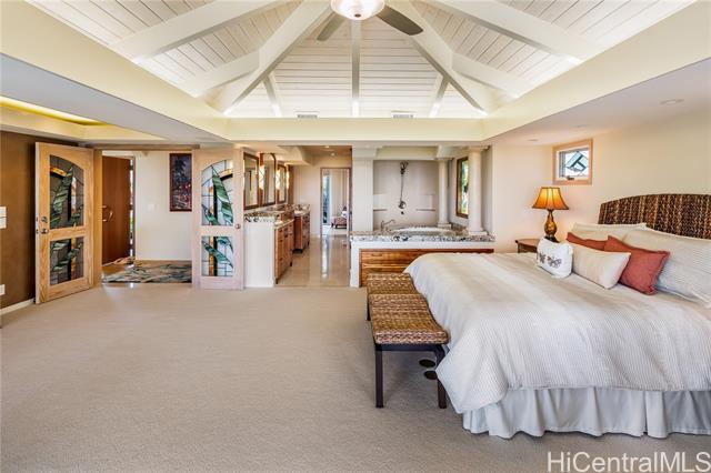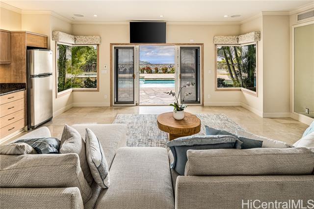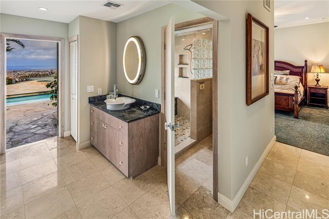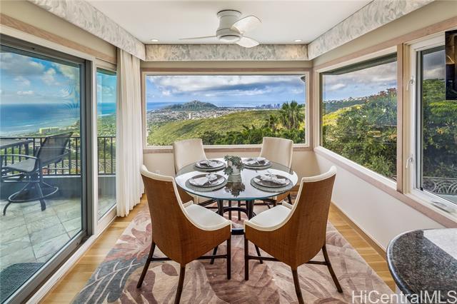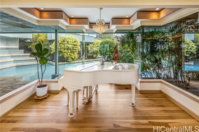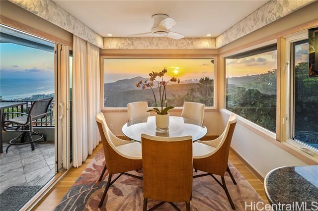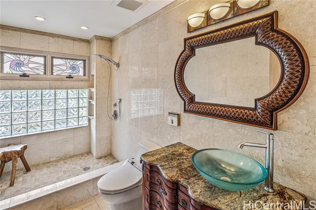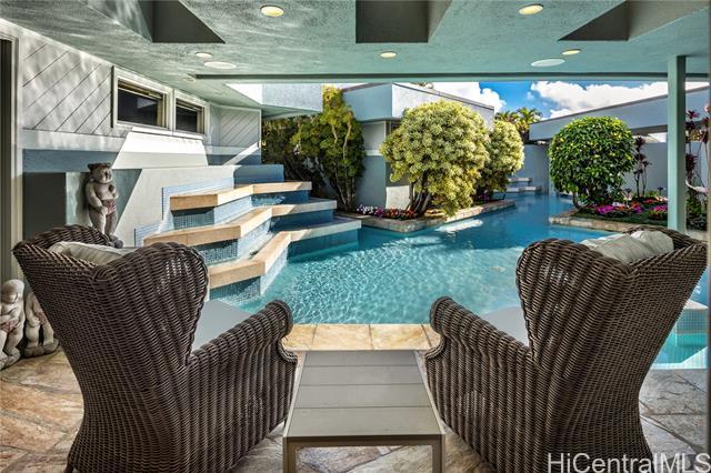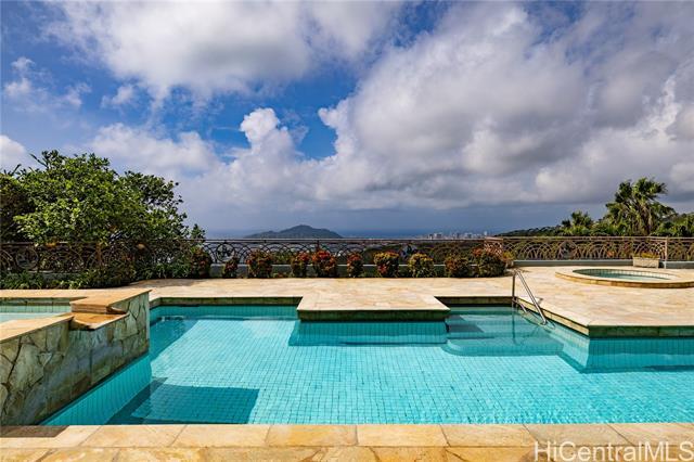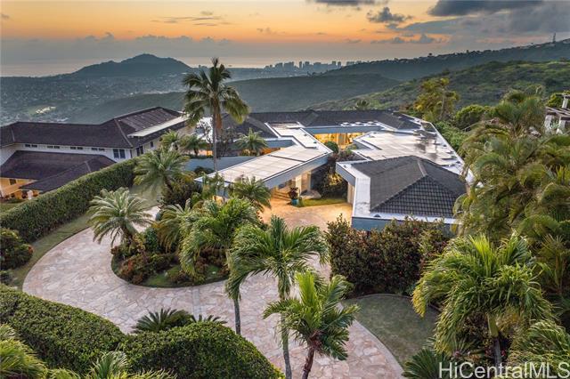 Fee simple .53 acre legacy estate in premiere Waialae Iki V Gated Community. Designed by renowned architect Fritz Johnson, Sr. and Philpotts interiors. With newly installed 72 panel PV & 4 Tesla Powerwall system in 2025, this stunning south Diamond Head-facing residence offers breathtaking panoramic ocean, sunrise, & sunset views, flooding with natural light during the day and showcasing glittering city lights by night. The thoughtfully designed classic floor plan features a private interior courtyard with central waterfall, afternoon tea deck, exotic landscaping, separate maid’s ADU quarters, private terraces, home theatre, and more. Every detail reflects exceptional craftsmanship, from the French crafted copper and koa entry doors, to the custom Hawaiian stained glass and handcrafted koa and mango built-in cabinets, complemented by recessed lighting and quality appointments throughout. Bella Vista is a truly iconic creation and a masterpiece that stands as a legacy development gracing the Waialae Iki V mountainline. Outside, discover a lushly landscaped oasis with a resort-style pool. The prime Waialae Iki V location puts you moments away from premier dining and shopping.
