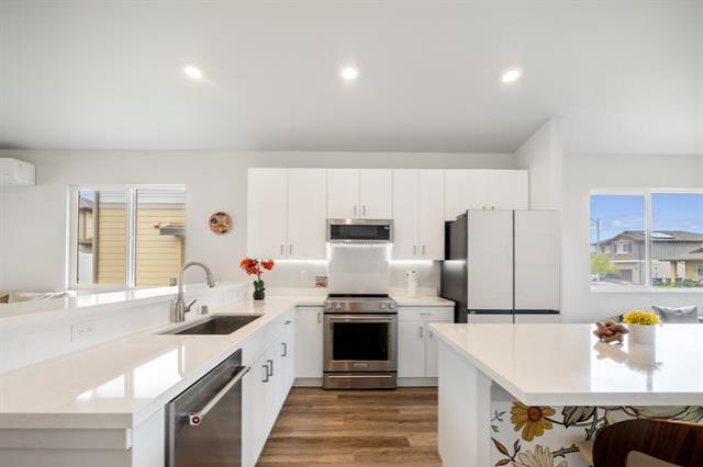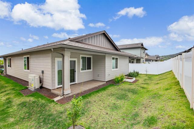 Don’t miss this beautiful 3-bedroom, 2-bathroom single-level home in the desirable Noho Papa at Ho‘opili community, featuring the largest single-level floor plan available. This ground-level residence offers a bright, modern interior and is privately tucked away in the Pohaku Estates neighborhood. Enjoy energy efficiency with 20 owned PV panels and 2 batteries providing added savings and sustainability. Located in Ho‘opili’s newest single-family home community, this home offers contemporary living with convenient access to nearby shopping, dining, and everyday essentials.