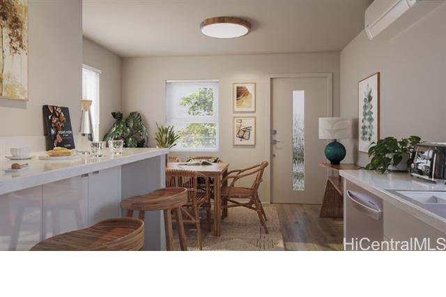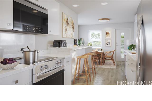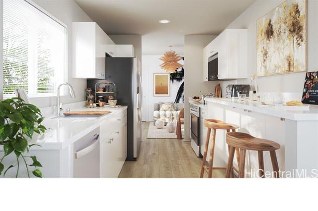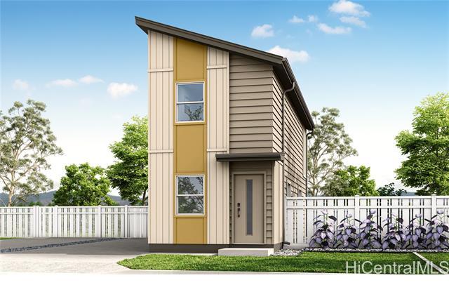 This two story 2-bedroom 2-bathroom detached single family home consists of 880 square feet of net living area and a fully fenced private back yard area. When you step into this home, you will be greeted by the living room that leads seamlessly into the kitchen featuring a bar height seating area, stainless steel appliances, and white soft-close cabinets. The first floor also features a full bathroom with a shower-tub combination and a bonus space that’s perfect for a home office, lounge room, or game room—the possibilities are endless. The second level features the secondary bedroom and primary bedroom with a walk-in closet and ensuite bathroom with a vanity sink and walk-in shower. Whole house split air conditioning and modern appliances including a range/oven, micro-hood, dishwasher, refrigerator, and washer/dryer allow for ease of living. This unit is being initially offered for sale to owner-occupants pursuant to HRS 514B-96. Owner-occupant affidavits are required and are available at the Ho‘opili Pohaku Estates Sales Center. Estimated completion is September 2026. Model of the same floor plan available for viewing.