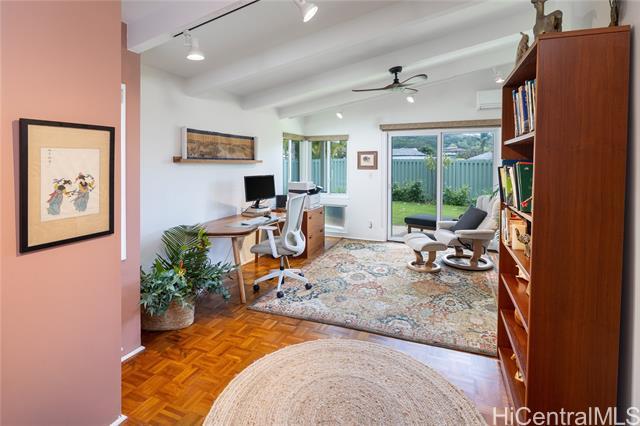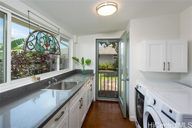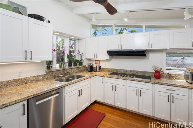 Beautiful Niu Valley home offers privacy, security, and comfort. Living space opens to a peaceful covered lanai and garden. Attractive features include tropical landscaping, modern kitchen, laundry, and bathrooms, and a PV system backed up by a battery. This spacious single-story home is ideal for raising a family or enjoying retirement. The house is in good condition but selling in "AS IS" Condition; please use "AS IS" Condition Addendum.