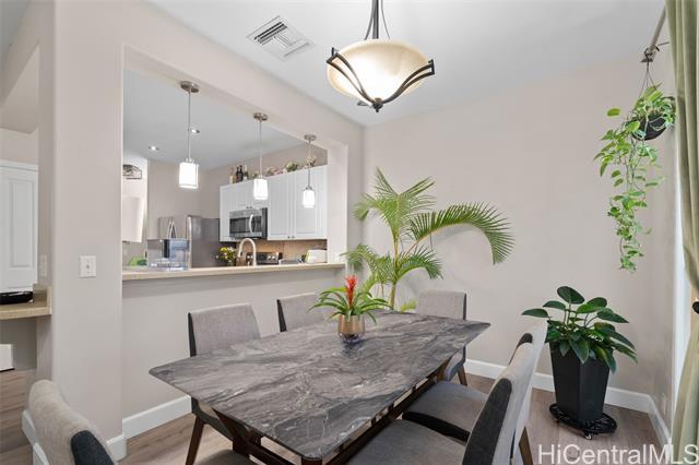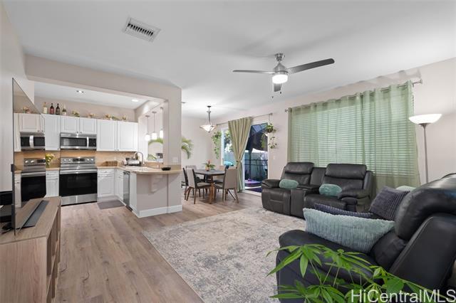 Step into the perfect blend of comfort, space, and island convenience in this beautifully designed four-bedroom home. Filled with natural light, the open-concept layout creates a warm and inviting atmosphere—ideal for both everyday living and effortless entertaining. Enjoy your own private wraparound fenced yard, perfect for relaxing evenings, weekend gatherings, or simply giving you that extra outdoor space that’s hard to find. This home also features a spacious two-car garage, additional driveway parking, and ample guest parking nearby—making hosting easy and stress-free. Located just a short stroll from one of two private community pools, a large recreation area, and exclusive party rooms, you’ll feel like you’re living in your own resort-style community. Convenience is everything—you’re minutes from Laulani Village Shopping Center, beautiful beaches, golf courses, dog parks, and playgrounds, offering the ideal balance of lifestyle and accessibility. The association fees cover sewer, water, homeowner’s insurance, community maintenance, and pool access—providing a truly low-maintenance and worry-free living experience.VA loan assumption may be available with a small gap!