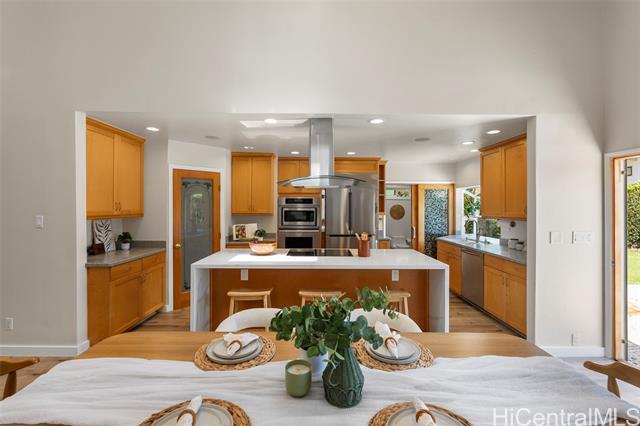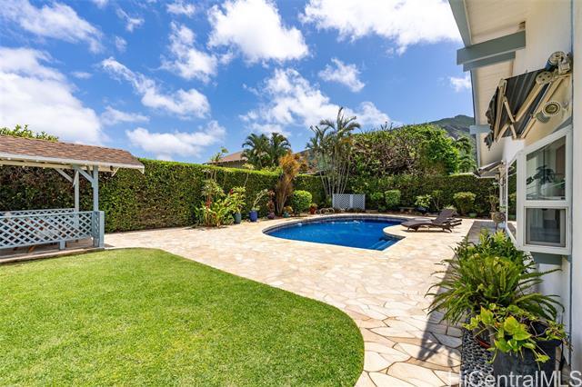 Located in on of Honolulu's most caring neighborhoods where neighbors really look out for each other. Plus, you have easy access to Mariner’s Cove Bay Club, which offers boat parking and water access for boating and water activities. This 5-bedroom, 3 full bath, 1 half bath home was beautifully remodeled in 2026 and is ready for you to move right in. New flooring, a new kitchen island with cooktop, updated countertops, toilets, new paints in & out- everything feels fresh. The home comes with 52 owned solar PV panels to help with energy costs and a Tesla EV charger. Outside, you'll love the private pool that was fully tiled in 2019, and you can also use the community pool. There's a gazebo in the yard perfect for relaxing and entertaining. With a 3-sided greenery fence for privacy and mountain views, this yard is great for spending time with your family and friends. Parking is easy with a 2- car garage, front driveway, and street parking available. Come see it for yourself- you may just fall in love!