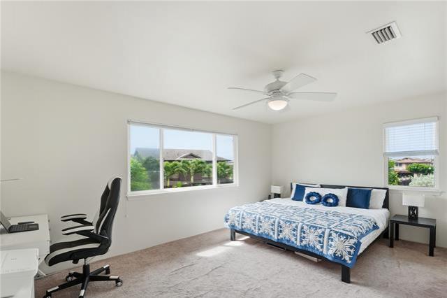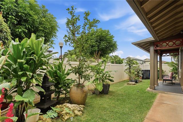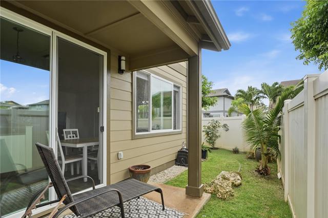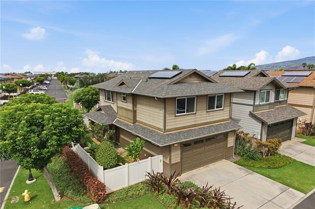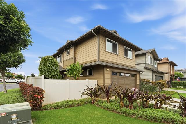 Very well-maintained 3-bedroom, 2.5-bath home in Laulani Trades! This corner lot enjoys no neighbors to the side and rear, allowing for added privacy, natural light, and a more open feel. The fully fenced yard features landscaped side and rear spaces—ideal for relaxing, entertaining, or letting pets play. Built in 2013, this home reflects clear pride of ownership, with thoughtful upkeep and recent improvements throughout. Kitchen appliances including the refrigerator, range/oven, microwave, and dishwasher were all replaced within the past year, while the washer/dryer are approximately 5 years old. The central AC motor was replaced 2024, and the home is equipped with solar water heating for added efficiency. Located just a short distance from the community recreation area and ample nearby guest parking. HOA fees are reasonable and have even decreased from the previous year. Conveniently located just minutes from Safeway, Starbucks, City Mill, and a variety of shops and restaurants. Priced extremely well...1st Open House Easter Sunday, 4/5, 2-5pm, or book a private showing during the week!