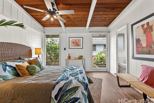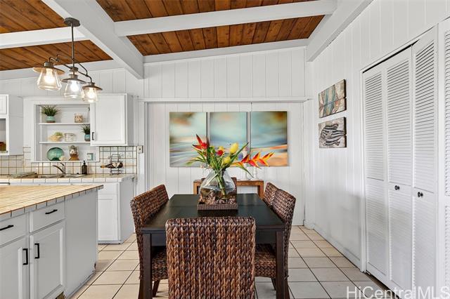 Relaxed Waimanalo living, near the beach and with stunning Ko'olau Mountain Range vistas! Adorable Mid-century Kama'aina style home, with vaulted ceilings, abundant light, and new exterior paint. Many fruit trees and flowering shrubs on property, a gardener's delight! Single-story home, 3-bdrm, 1.5-bath with high ceilings and nice breezes. There's an additional attached remodeled rec room, with its own bedroom, walk-in closet, and remodeled bathroom/bar area. Use together for a 4/2.5 or separately as a home with a guest suite or rental. Total is 1640 SF. Property also includes another semi-detached 1-bdrm, 1-bath, 510 SF permitted cottage. Could possibly be turned into ADU? Buyer to verify. Perfect property for multi-generational living. As a bonus, each living area has its own private outdoor space. 2 combo W/D units for laundry on property. This is very close to Kailua, at the entrance of Waimanalo. <3 mi to Keolu Kailua Safeway. Great 1031 exchange property or starter home with help for the mortgage. Main 3/1.5 was rented for $3500, including utilities. The other two areas (cottage & rec/BR/BA were not rented and used by owner). Amazing opportunity at this price.