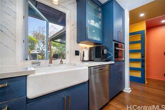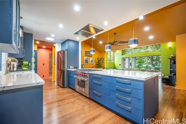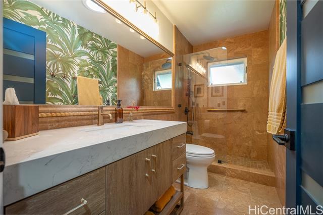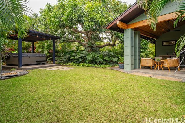 3 BR, 3 Full Baths, on a cul-de-sac! Mango Tree! Two Lanais!! This elegant, fully remodeled & equipped, single level home, is an oasis & is ready for you to move in now. Open kitchen w/ large, center island includes Cambria Quartz Counter Tops, pop-up outlets & self-closing drawers. This home has fine Miele appliances, including a steam convection oven. In addition, a Wolf Gas Cooktop Range & Zephyr Hood. Dining room opens to Lanai. Fully hidden sliding glass doors open LR onto private lanai w/ cedar ceiling, fire feature and wet bar. The MBR has a tray ceiling & walnut closet features, rain shower head & “floating cabinets” in main bath. Large, Spa Hot Tub with Pergola & outside heated shower! Insulated walls & Photovoltaic Solar, On Grid Electrical, Three Battery Back-Up Power Panels & Gas provide unparalleled energy benefits. Separate laundry room. Upgrades include: Three Instant Hot Water Heaters, Coastal Storm Windows, Cathedral Ceiling & Skylights, Minka-Aire Ceiling Fans, Bamboo Floors, 240 Volt Car Charger, Enhanced gutter & yard drainage, Extra storage & tool shed. Access to the Beach, Kailua Town shops & Castle Adventist Hospital.