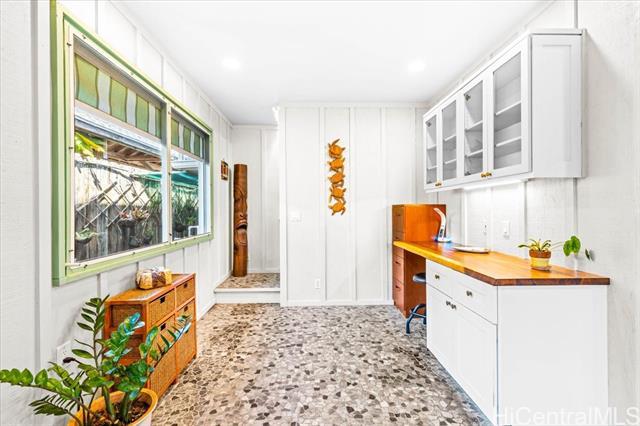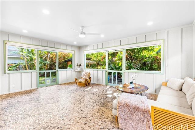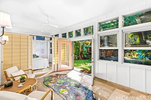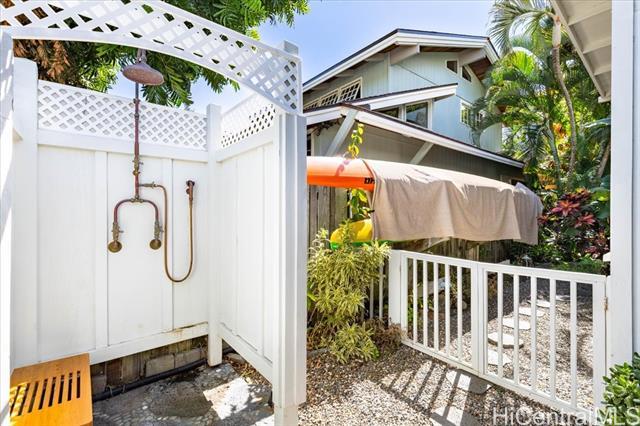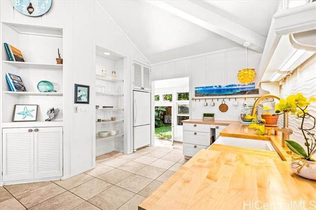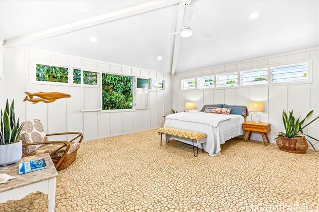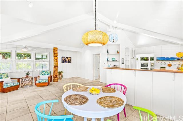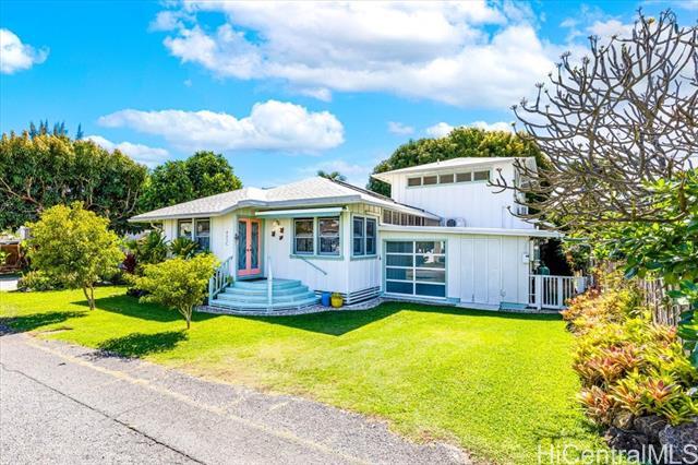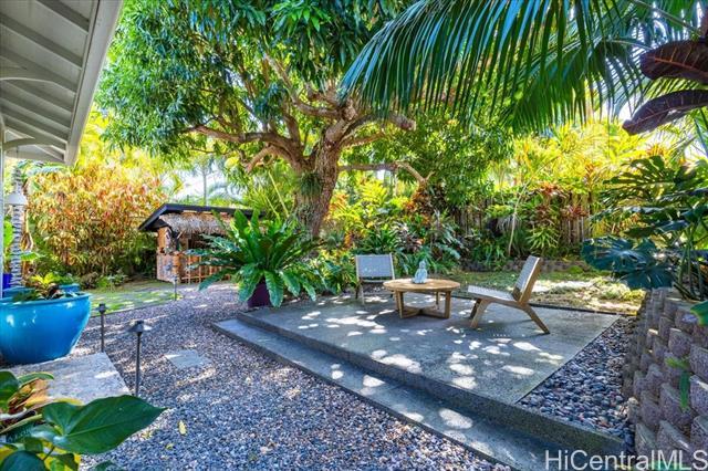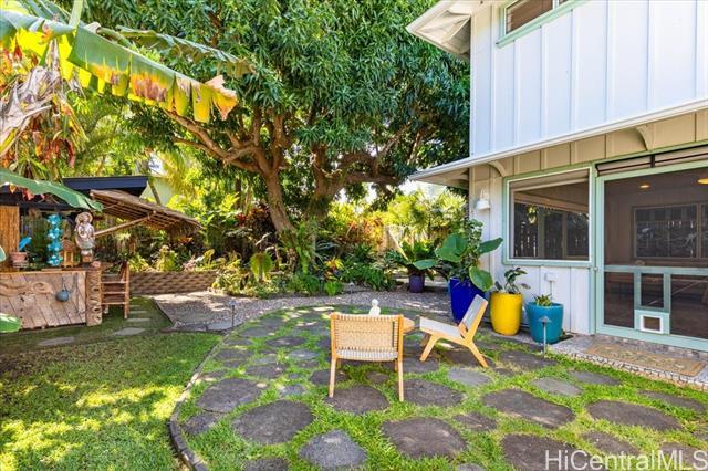 Located in a highly coveted neighborhood across from world-renowned Kailua Beach, this one-of-a-kind tropical retreat is a rare find for those who value indoor-outdoor living. Fully updated & impeccably maintained, this home showcases a beautiful 2024 kitchen remodel, a spacious primary suite w/a stunning ensuite, a serene 2nd garden bedroom & 2 additional stylish baths. Natural light fills the home through walls of windows highlighting high ceilings, custom flooring, artistic details & open-concept living, dining & kitchen spaces designed for comfort & entertaining. Step outside to fully enclosed professionally landscaped gardens w/lush greenery, flowering plants, fruit trees & songbirds, creating a relaxing peaceful oasis. Entertain effortlessly at the amazing Tiki bar & BBQ/sitting areas—perfect for magical twilight evenings & unforgettable gatherings. Additional features include 20 owned PV panels, deluxe hot/cold outdoor shower, solar water heater, enclosed lanai, boat parking & much more. Tucked away on a private road near Kailua Town & in desirable Kaohao School District this exceptional property feels secluded while being just minutes from the beach & everyday conveniences!