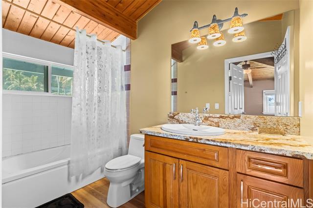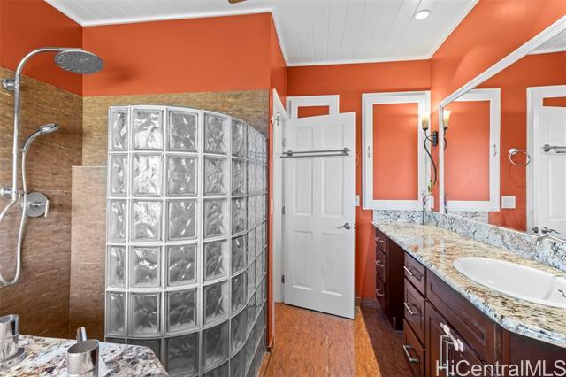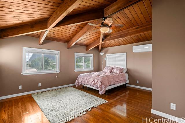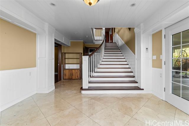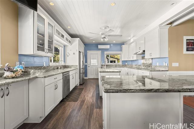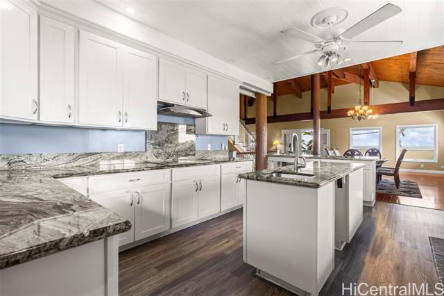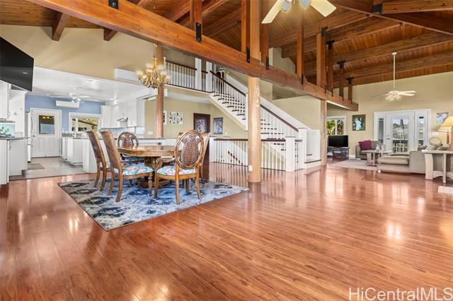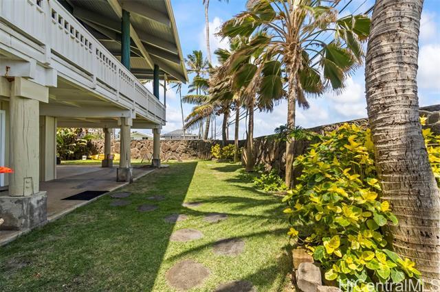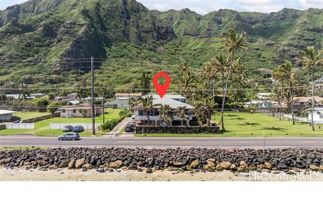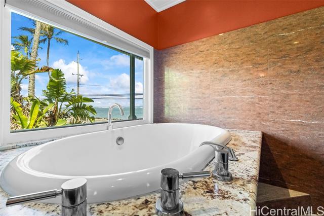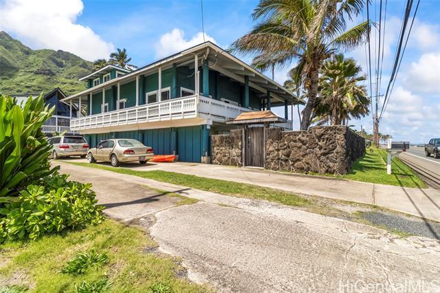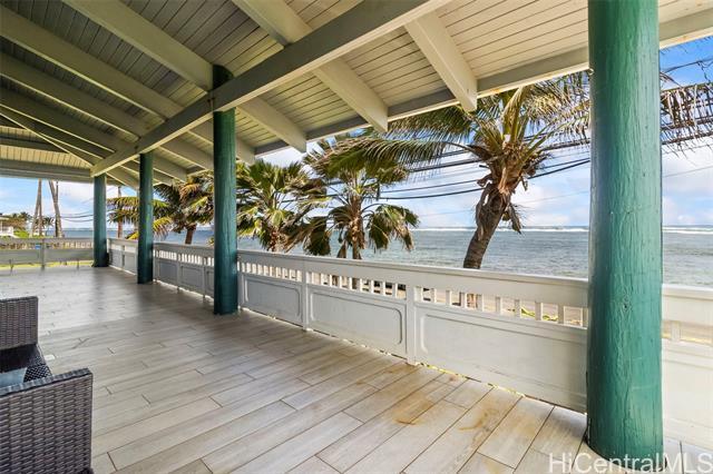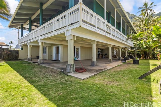 Rare opportunity in Kaaawa with sweeping ocean, sunrise, and mountain views just steps from the water. This 4-bed, 4.5-bath home blends island living with upscale finishes, featuring open-beam wood ceilings, a grand Ipe staircase, and seamless indoor-outdoor flow. The open kitchen and living area is built for entertaining with dual islands, granite countertops, double ovens, and a wine fridge. Multiple en-suite bedrooms, including a spacious primary with a soaking tub and panoramic views. Wraparound deck, plantation-style lanai, split AC, and quality finishes throughout. Turnkey coastal living with direct access to swimming, paddling, and fishing.