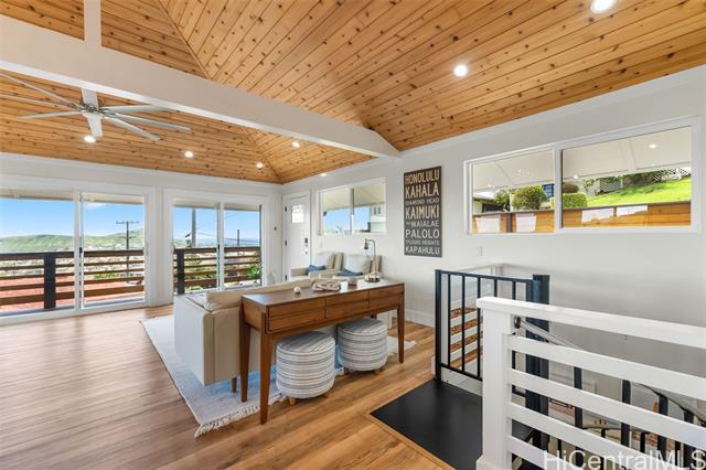 Seize the opportunity to own this move-in ready, fully furnished 5BD/2BA rim lot home, offering sweeping views of the mountains, ocean, Diamond Head, and famed Honolulu city lights. Perched on Wilhelmina Rise, this home boasts an expansive and unobstructed views of Mau`umae Nature Park and the lush tropical valley below. The main level features an open floor plan with a stylish kitchen, island breakfast bar, 2BD/1BA, and a covered wrap-around lanai—the perfect sanctuary to begin each day with a gentle sunrise and end with ever-changing sunsets. The lower level includes 3BD/1BA and direct garage access. The fenced front yard features an outdoor shower for a post-beach rinse. Gardening enthusiasts and those with a vision to further customize the outdoor space will appreciate the lower terraces. Located above vibrant Kaimuki with rapid access to Kahala, urban Honolulu, H-1 freeway, beaches, restaurants, and shopping centers, this home represents exceptional value for first-time buyers, second-home seekers, or savvy investors. Listed below tax-assessed value. All furnishings are included for a truly turn-key experience. Buyers to complete all due diligence. Sold AS-IS.