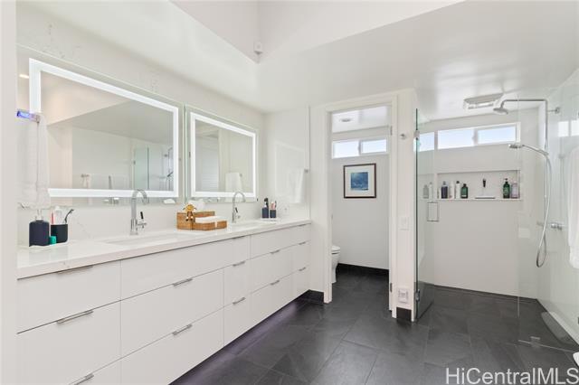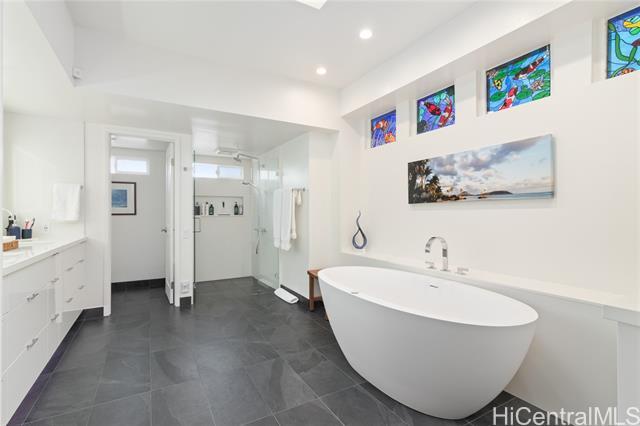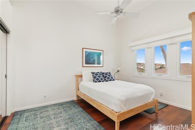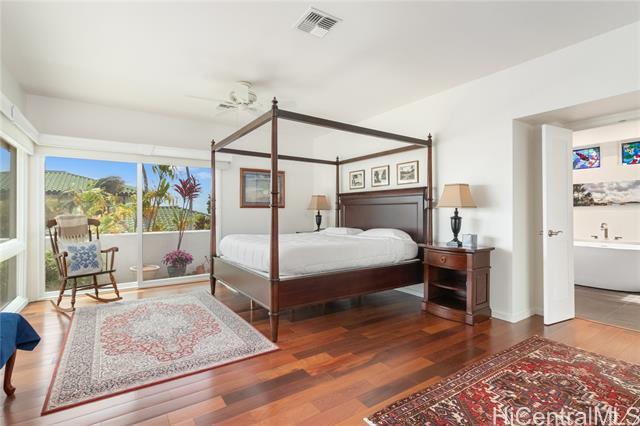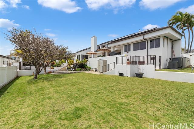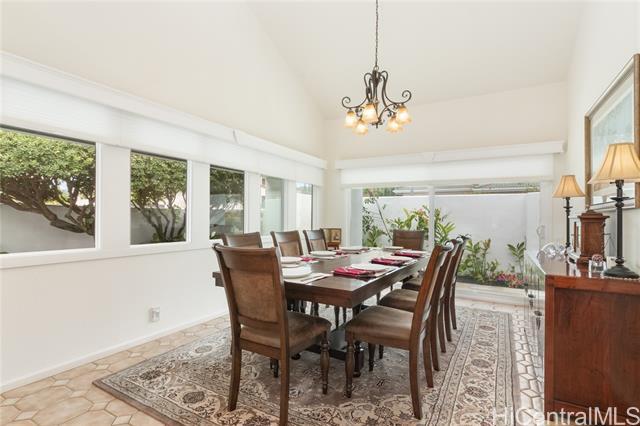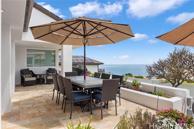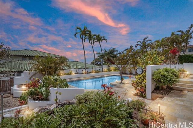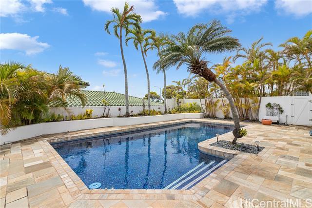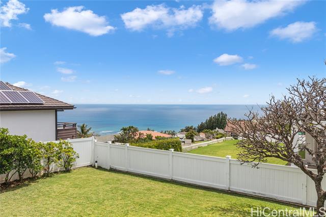 Sophisticated single level home with a beautiful ocean view. Perched on a prime corner lot within gated community of Waialae Iki 5. Meticulously maintained single level home designed with an architectural flow that captures the essence of island elegance. Step inside to soaring high ceilings and the warm, rich tones of ipe engineered wood flooring. Primary bathroom remodeled with modern finishes, an Italian stone tub and Italian porcelain tiles. Enjoy the open kitchen that looks out to the view. Fully walled-in with large level yard, swimming pool, fish pond and lemon tree. Plus 60 PV panels. A great home for entertainment!