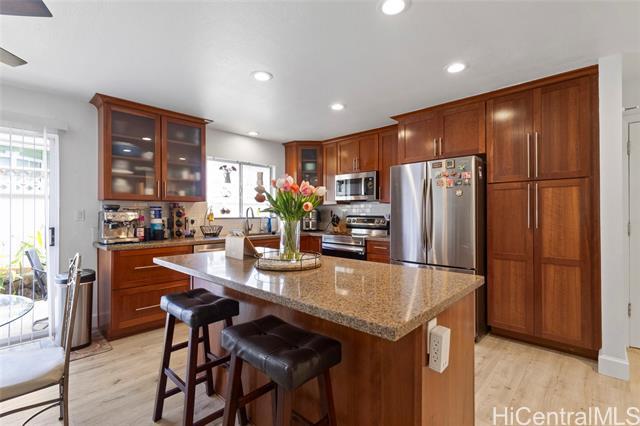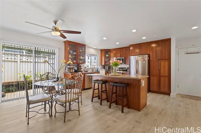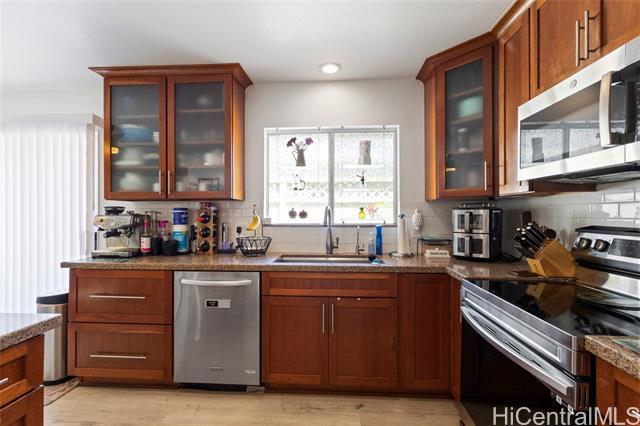 Welcome home to beautiful Westloch Fairways! This beautiful 3 bedroom, 2.5 bathroom attached single family home is move-in ready with stunning updates. The recently renovated kitchen and recently added epoxy flooring and built-in cabinets in the garage give this home a modern feel. Step inside and immediately feel like you’ve made it home with the large windows that allow tons of natural light. With split AC systems throughout the home, you can enjoy cool days in your new home without the headache of older AC systems. Head upstairs to enjoy a true oasis of a primary bedroom. With your own private lanai, large windows, a huge closet, and an amazing bathroom with a walk-in shower, you have ample storage and plenty of space. Step outside to enjoy a large private yard with plenty of space to enjoy a BBQ, entertaining or space for children and pets to play. Located just moments from H-1, never worry about waiting in Ewa traffic because commuting is a breeze. The neighborhood is located just down the road from a hospital and is within minutes of all the local dining, shopping, golfing, and parks you need. Don’t miss this amazing opportunity!