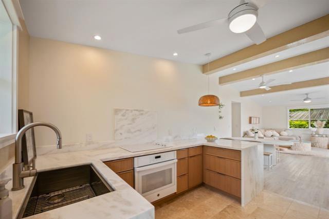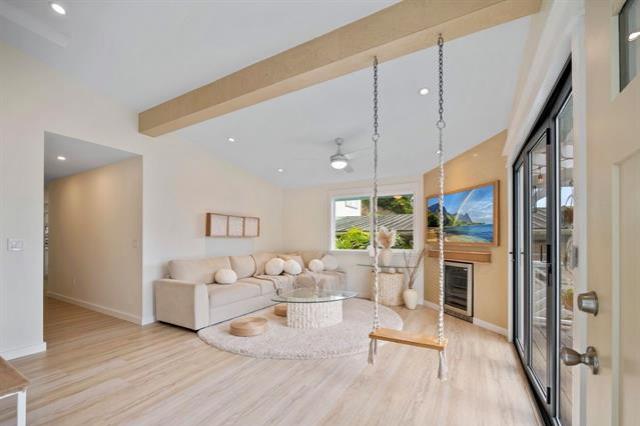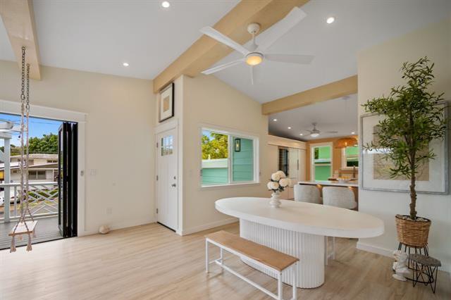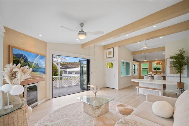 Hale Laule'a has been thoughtfully and meticulously updated to elevate its original structure with luxurious materials that support ethical, energy-efficient, and sustainable living for generations to come. With Japanese and Scandinavian influences, the home focuses on natural materials, minimalist aesthetics, and tasteful craftsmanship, encouraging mindful consumption and lasting quality: reducing waste and promoting eco-friendly living. With 7 bedrooms and 3.5 baths, this home is designed with multigenerational living in mind. This space supports sustainable living through shared resources and a smaller collective footprint. As you enter, the main living area extends to an attractive open deck, allowing a lot of natural sunlight as well as an extension of the outdoors to resonate. The downstairs kitchen boasts Sub-Zero appliances, which offer both luxury and long-term value. Upstairs has a permitted wet bar ideal for added flexibility, or creating a private in- law suite. The property is fully enclosed, with a variety of fruit trees & ample storage space. It is centrally located in a tucked-away neighborhood. This private oasis is just awaiting your personal touches.