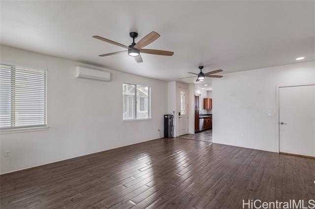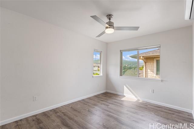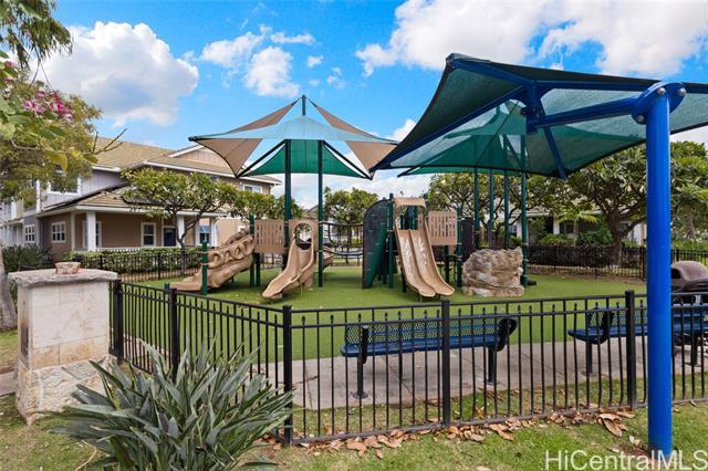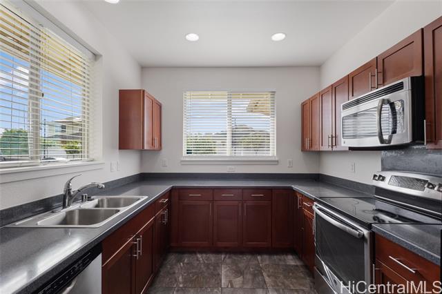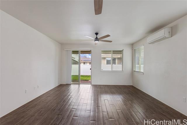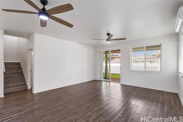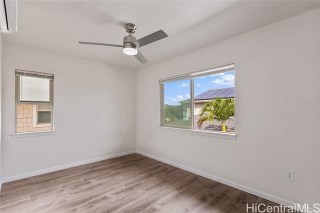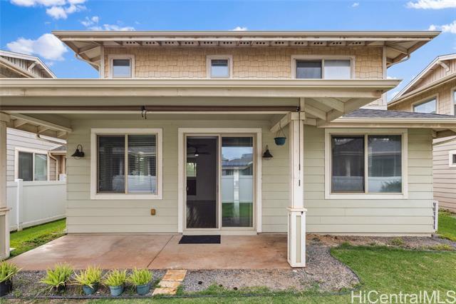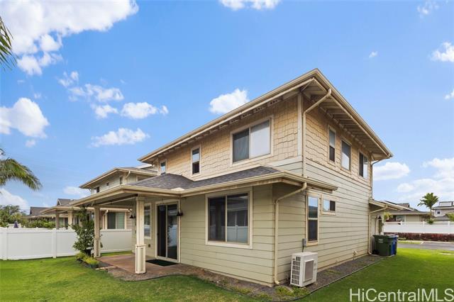 Rarely available in the highly sought after Mehana Olino community in Kapolei! This beautifully maintained 4 bedroom, 3 full bathroom home offers comfort, convenience, and modern island living. Featuring a full bedroom and full bathroom on the first floor, it’s perfect for multi generational living, guests, for inlaws, or added flexibility Enjoy your own private backyard and cozy lanai, ideal for relaxing or entertaining. Inside, you’ll find upgraded luxury vinyl plank flooring throughout, a well appointed kitchen with Corian countertops, and split A/C units in every room for year-round comfort. Mehana Olino offers resort style amenities including a community pool, fitness center, dog park, playgrounds, basketball court, BBQ areas, and scenic walking/jogging paths with a unique keiki racetrack. Surrounded with businesses around the area, and multiple lots of visitor parking right in front of the home and a long driveway as a bonus for extra parking. Conveniently located just minutes to schools, Ka Makana Ali‘i Mall, Starbucks, Target, theatre, shopping center, Costco, dining, and entertainment. This home is in the heart of one of Oahu’s fastest growing communities.