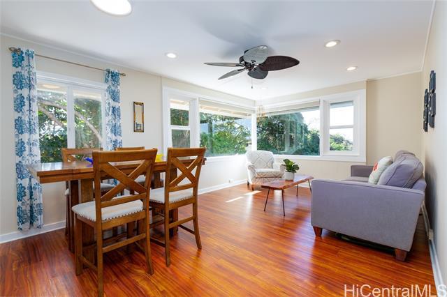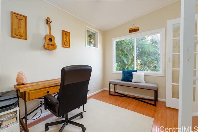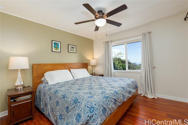 Perched in the desirable Aiea Heights! This beautifully situated downslope residence offers the perfect blend of privacy, comfort and island charm. Featuring four bedrooms, three full baths and a versatile additional office space. This home is designed to accommodate both relaxed living and modern flexibility. Tucked away on a quiet, private lane, the property welcomes you with a lushly landscaped yard adorned with matured fruit bearing lychee, avocado, mango and grapefruit. A fully paid photovoltaic provides exceptional energy efficiency and long term savings, enhancing both sustainability and value. The inviting layout captures cool island breeze and a peaceful ambiance that truly sets this home apart. This is a home you must see to appreciate.