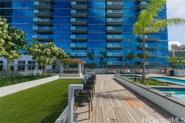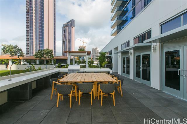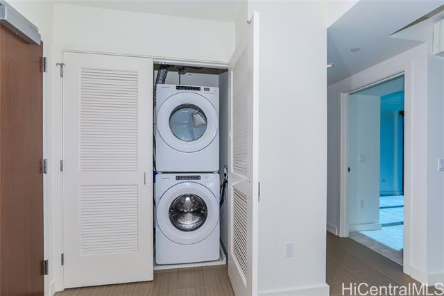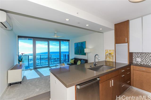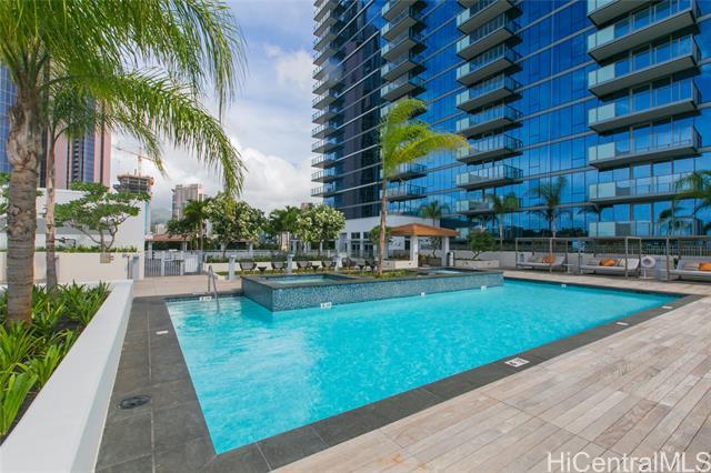 High floor with floor to ceiling windows to take advantage of the panoramic views. Located on the Diamond Head side of the building. Well maintained unit just painted with new carpets. Contemporary designed kitchen with quartz counter tops. Full size washer/dryer. Walking distance to shopping, restaurants and more! Amenities including pool, fitness center, BBQ pavilions and storage! Parking stall located on a lower level right past the parking gate.