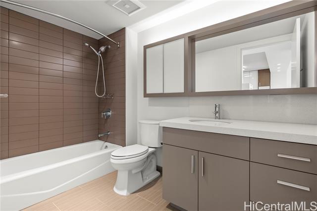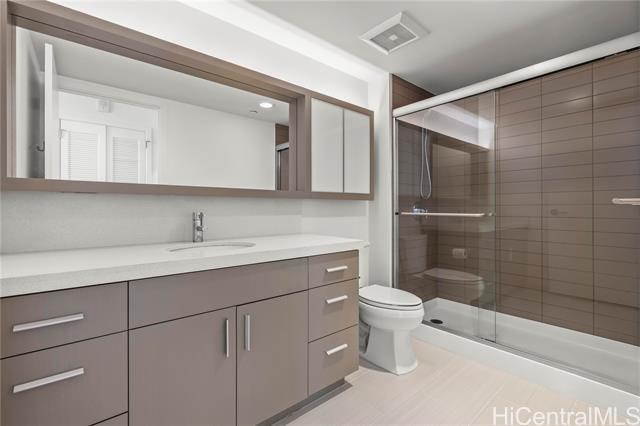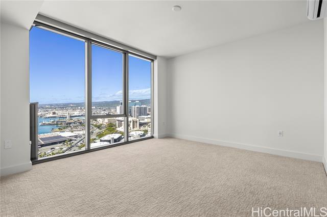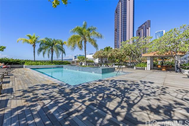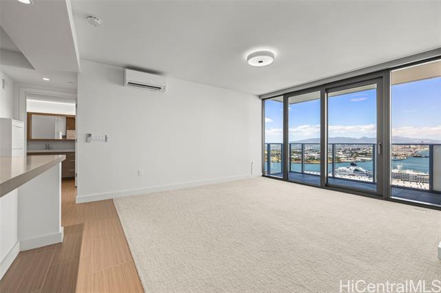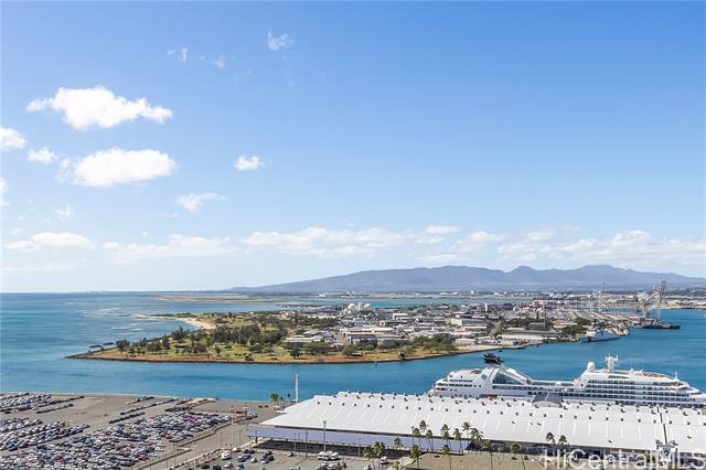 If You Know You Know! Front Row. Cool. Unobstructed panoramic sunset, beach, harbor, cruise ships, Aloha Tower and mountain views with additional bonus 77 sq ft. usable covered lanai for indoor-outdoor living. Bright airy covered side by side parking off main thoroughfare with strategically located bonus 27 sq ft. private storage ROOM and storage locker on Level 6 close to elevator and woof park/wash station. Motorized shades/blackouts for bedrooms included. Chef's Kitchen with Bosch stainless steel appliances and natural quartz counter. Amenities: Pool, Jacuzzi, private party room equipped with kitchen and media, private outdoor cabanas, grill stations, gym and yoga room. Award winning management team with first residential building to install level three fast chargers. Walk Score: 89 out of 100 with SALT next door and blocks away from future transit station. Enjoy the good life! Sold "As Is"