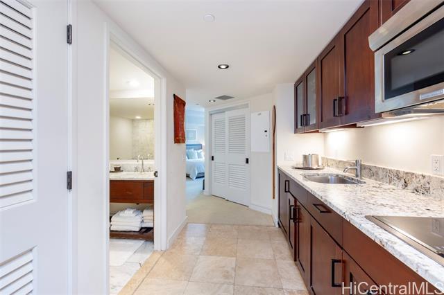 Ka Lai Waikiki Beach is one of Honolulu's premier ultra-luxe destinations, offering an elevated 5-star resort experience just across from Waikiki Beach. This 8th floor studio residence has been well-kept in its original condition and features a high-end kitchentte with cherry-wood cabinetry and granite counter-tops, a luxurious bathroom with a double vanity, separate deep soaking tub and walk-in shower, and a spacious studio living area with ample relaxation room to enjoy your Waikiki get-away. This unit has not received the hotel renovation package and is not in the hotel rental pool, but offers an exceptional opportunity at a great price for a part-time owner or managed investment. Enjoy on-site resort amenities in a world-class destination just across from Waikiki Beach, nearby shops, restaurants, entertainment, and more.