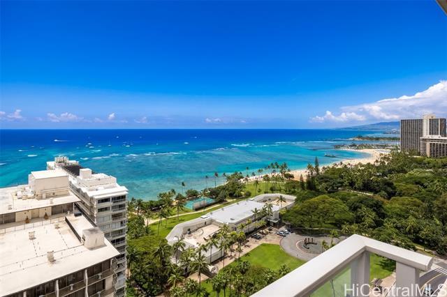 Situated near the entrance of Waikiki, Ka Lai Waikiki Beach #2410 invites you to experience true five-star resort living. Enter this 2,040-square-foot, 3-bedroom, 3.5-bath front-corner residence and discover an open-concept living space bathed in panoramic Pacific Ocean views throughout the kitchen, living room, dining area, and lanai. The primary suite delivers an exceptional place to unwind, featuring Pacific Ocean and Beach Park views, a walk-in closet, and a resort-style ensuite bath complete with a double vanity, a walk-in shower, and a deep soaking tub. Two additional ocean-view bedrooms, each with an ensuite bath, sit on the opposite end of the residence for added privacy. Enjoy premium on-site amenities, including an infinity-edge pool, spa and massage services, a fitness center, exceptional dining venues, concierge services, and more. This prime location places you just one block from sandy beaches, nearby shops, acclaimed restaurants, and vibrant entertainment. A definitive statement in luxury coastal real estate, welcome home to Ka Lai #2410.