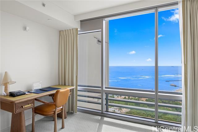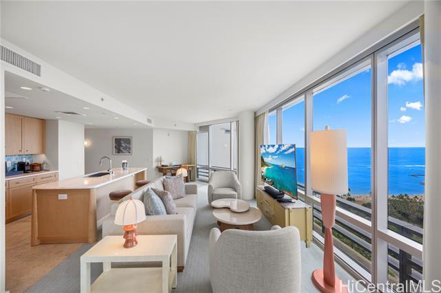 Renovation completed in Jan 2026!! Enjoy luxury living at Ka La'i Waikiki Beach, LXR Hotels & Resorts Hotel/Condo! (former Trump International Hotel Waikiki) This 2 bedroom comes fully furnished and has desirable ocean views and just finished interior renovation! Top notch amenities include infinity pool, concierge, valet parking, and a full service spa. Included in purchase are upscale appliances, granite counter tops, and travertine tile flooring.