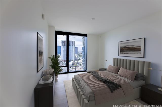 Discover elevated island living at Victoria Place, Ward Village’s newest statement in refined luxury. This impeccably designed 1-bed, 1-bath residence offers 798 sq. ft. of sophisticated comfort, highlighted by 9-foot ceilings and expansive glass walls framing stunning ocean, mountain, harbor, city, and sunset views. Upgrades include motorized living room shades and bedroom manual shades. The open layout flows effortlessly, complemented by a gourmet kitchen with Studio Becker cabinetry and premium integrated appliances. Set along Kakaako’s prestigious front row, Victoria Place delivers resort-inspired living with multiple pools, luxury spa facilities, an advanced fitness center, Pilates studio, sauna, private dining and entertainment rooms, media and theater spaces, meeting rooms, guest suites, and valet and concierge services. The exclusive Lauhala Pool House, complete with its own pool and chef’s kitchen, offers a unique venue for entertaining. A rare blend of style, comfort, and world-class design—Honolulu luxury reimagined. Select photos virtually staged/enhanced.