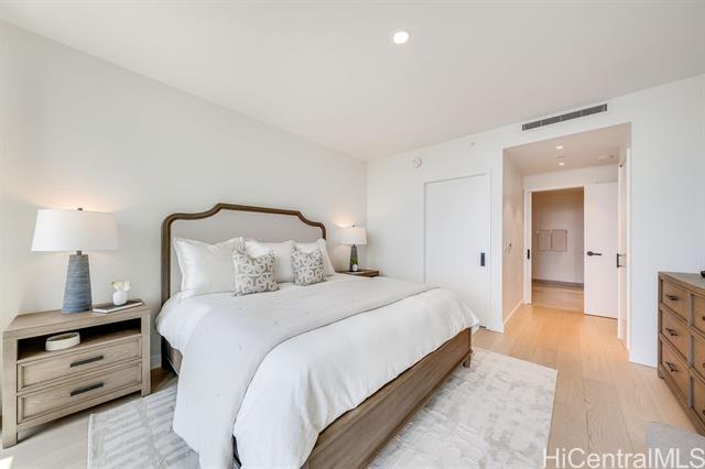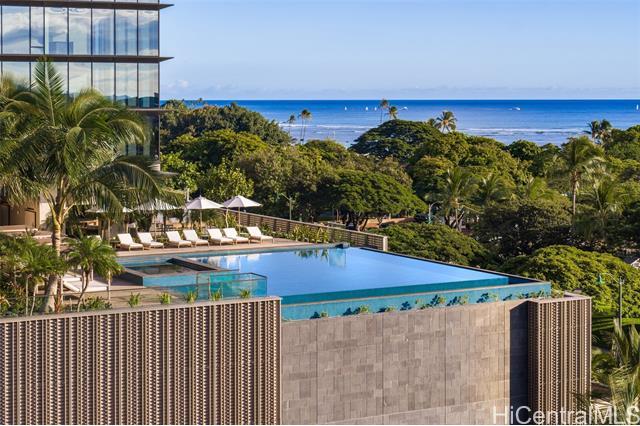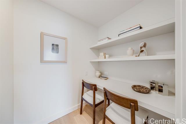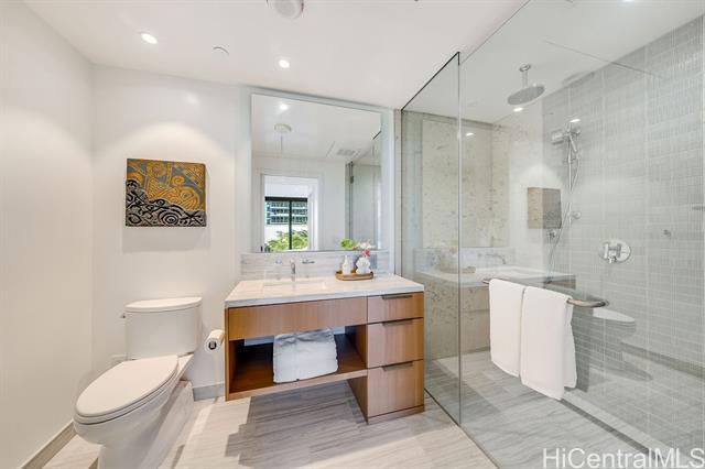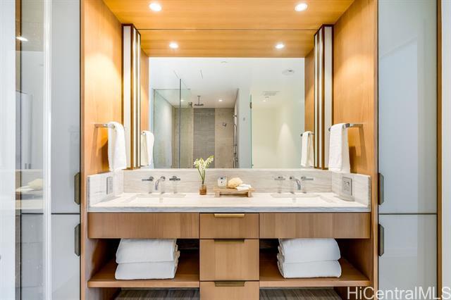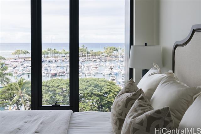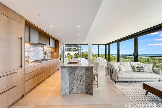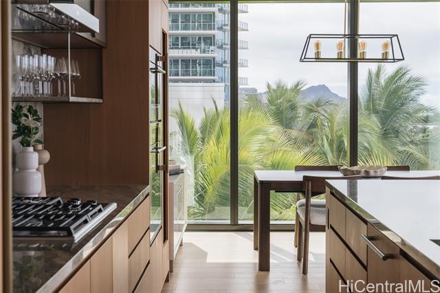 Rarely available 3-bedroom, 3-bathroom unit in the much-desired East-facing ’00 stack of Ward Village’s newest development, Victoria Place. This corner end unit features strong views overlooking the Pacific Ocean, the boat harbor and Diamond Head. Three well-sized bedrooms, an office nook, and a separate laundry room round out this functional living space, which also features custom-designed cabinetry by Studio Becker, Sub-Zero refrigerator, Wolf gas range, oven, and microwave. Victoria Place is a 350-unit luxury development designed by Architect Solomon Cordwell Buenz and placed on the front row of Ward Village. The common areas feature lush, green landscaping by VITA Planning and Landscape Architecture, and the resort-style amenities are in abundance, including a lap pool and lounge pool with ocean views, wine cave, spa, hot and cold plunge pools, fitness center, movie theater, and 24/7 concierge and valet service. This unit comes with two side-by-side parking stalls on the second floor w/an EV-ready 240V electrical outlet, which was installed during construction. No storage unit will be conveyed with this unit sale.