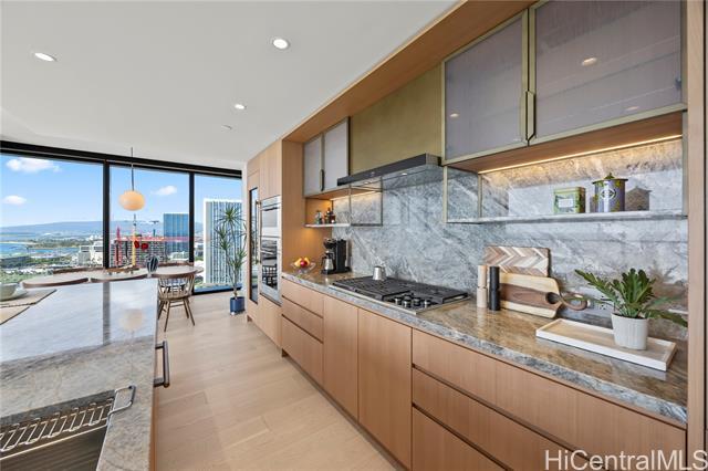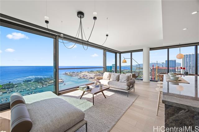 Welcome to an unparalleled sanctuary of sophisticated living in the highly coveted '01' stack at Victoria Place. As the most premier front-row residence in Ward Village, this exquisite home offers forever-unobstructed, panoramic of the Pacific Ocean, Kewalo Basin Harbor. This 3bedroom 3bath, every inch of this residence has been curated with an impeccable eye for design. Sold fully furnished with high-end, bespoke interior pieces, the home radiates a sense of "quiet luxury" that perfectly complements the floor-to-ceiling vistas. The gourmet kitchen is , custom cabinetry, and elegant stone countertops. The primary suite is a private retreat, positioned to capture the first light of dawn over the ocean, complete with a spa-like ensuite bathroom and generous walk-in closet space. Victoria Place is renowned not just for its architecture, but for its world-class amenities. Residents enjoy exclusive access to the private Pool, sunrise and sunset infinity pools, private theater, fitness center, and lush tropical gardens. '01' unit represents the pinnacle of Honolulu’s modern luxury. Don't miss this perfect paradise home.