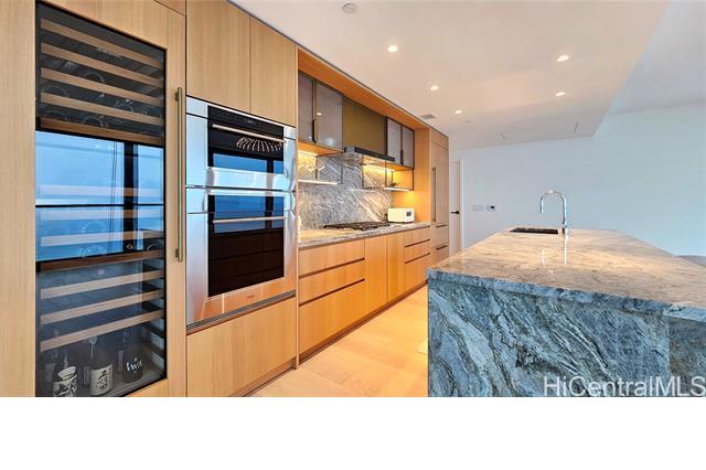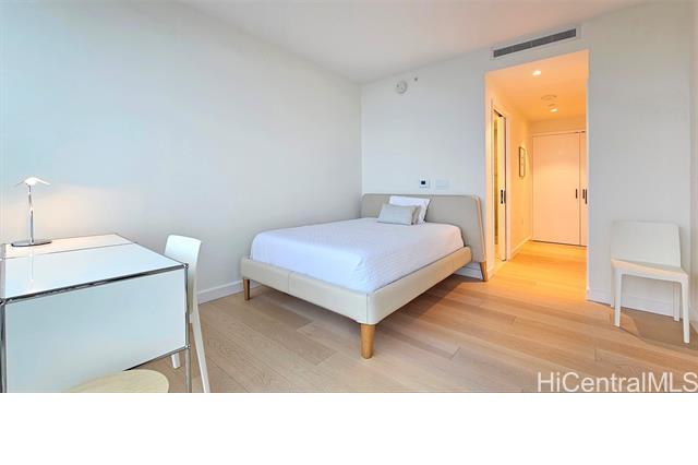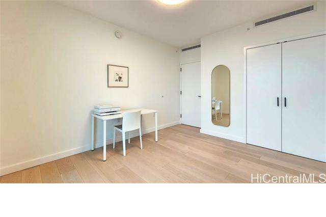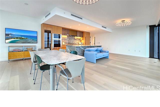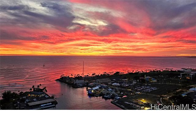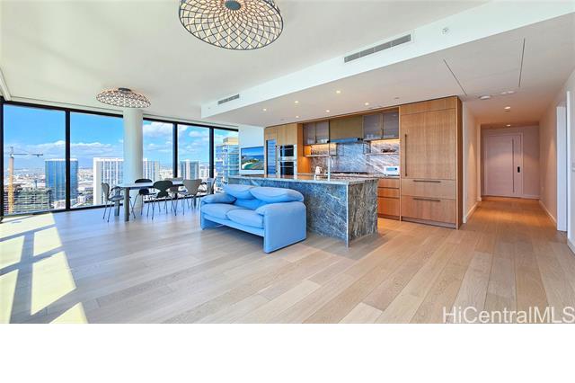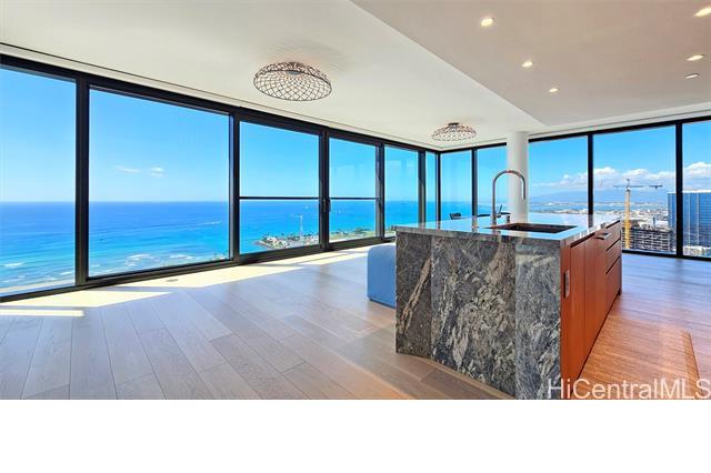 Experience refined island living in the coveted front-corner “01” residence at Victoria Place. Perched on a high floor and rarely available, this exceptional three-bedroom, three-bath home captures sweeping, unobstructed views of the Pacific Ocean and Kewalo Basin Harbor through dramatic floor-to-ceiling windows. Offered fully furnished with internationally recognized designer pieces, the interior showcases iconic Fritz Hansen furniture from Denmark along with elegant Italian-crafted sofas and tables, creating a sophisticated yet welcoming atmosphere of quiet luxury. The gourmet kitchen features premium appliances, custom cabinetry, and sleek stone countertops, while the primary suite offers a spa-inspired bath and generous walk-in closet with beautiful sunrise views. This high-floor “01” residence represents a rare opportunity to own a meticulously designed luxury home in one of Honolulu’s most prestigious addresses—an exceptional blend of panoramic views, architectural excellence, and designer-level interiors ready to enjoy from day one.a