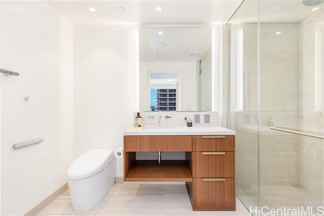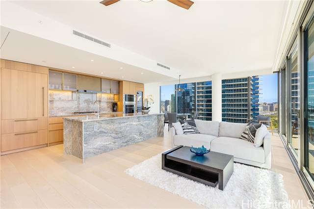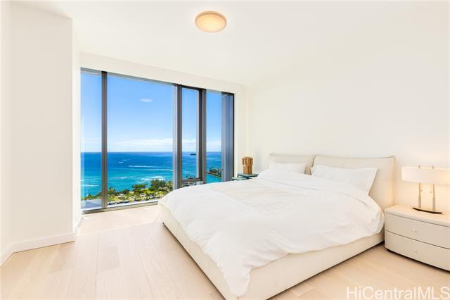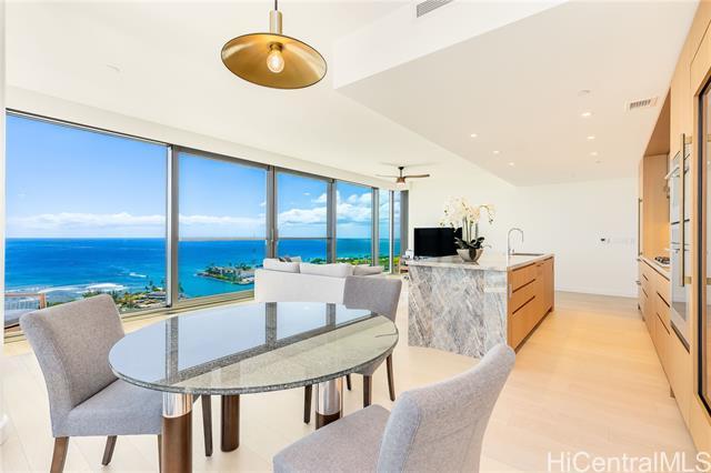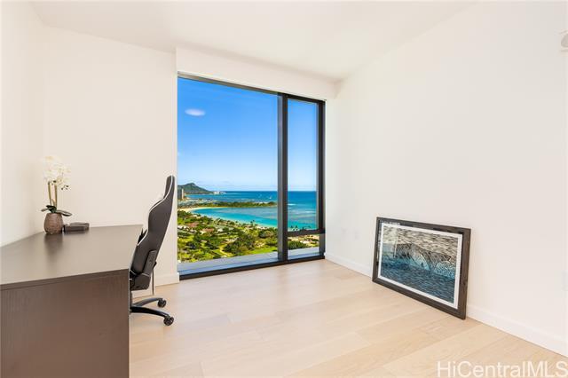 This corner residence is located in Ward Village’s newest luxury tower, completed in November 2024. The 3-bedroom, 3-bathroom home offers panoramic views of Diamond Head, the ocean, and sunsets. The interior features numerous upgrades, including motorized shades throughout, EV-charging readiness, TOTO Neorest washlets, and a full suite of Wolf and Sub-Zero appliances. The residence also includes two parking stalls and a storage unit. Amenities include an infinity-edge pool, lap pool, private pool house, BBQ cabanas, fitness center, wine room, theater, spa, 24-hour concierge, valet service, and guest suites. Located in the heart of Ward Village, the property offers convenient access to Ala Moana Beach Park, Whole Foods, restaurants, and shopping.
