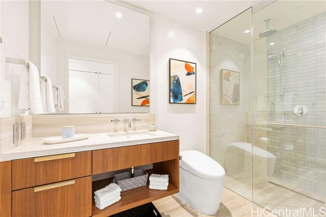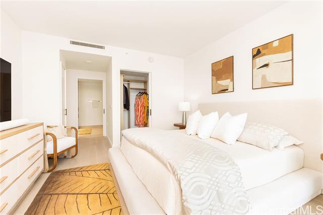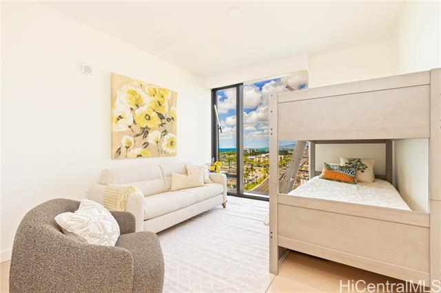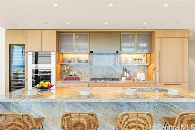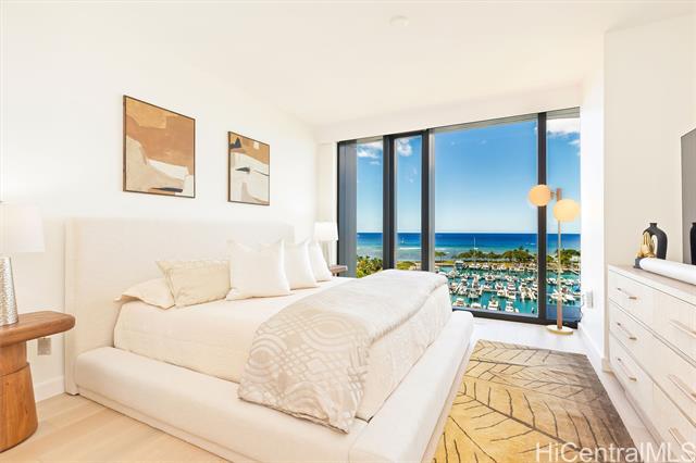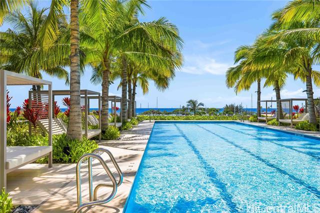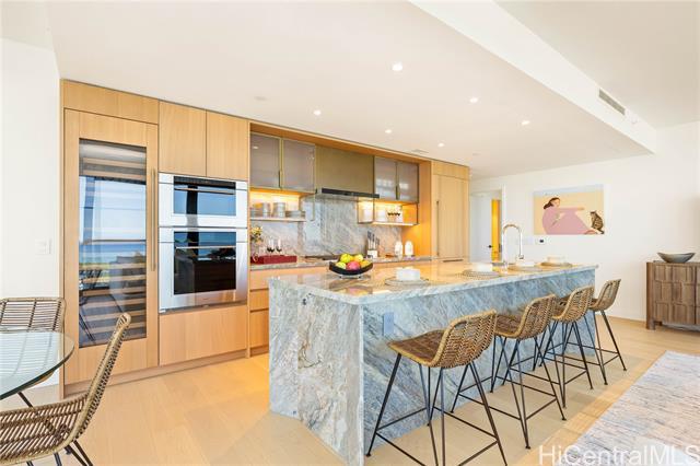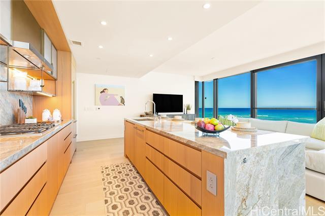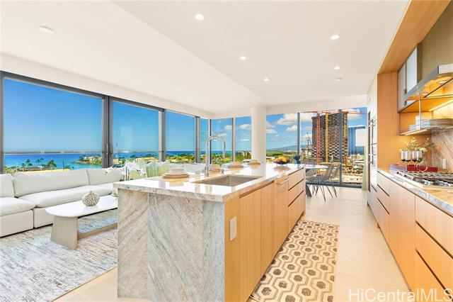 Direct Ocean and Sunset Views! Experience elevated island living in this coveted 3-bedroom, 3-bath residence at Victoria Place, Ward Village’s newest luxury oceanfront address. Floor-to-ceiling glass windows frame sweeping ocean views and golden sunsets with a spacious open-concept layout. Offered fully-furnished in excellent condition with minimal use, the residence features motorized shades throughout, bidet toilets, a custom-designed primary closet system, and a dedicated EV charging station located between rare side-by-side parking stalls, a valuable convenience in urban Honolulu. The refined interior is anchored by a sculptural quartzite island and appointed with Wolf appliances, Sub-Zero refrigerator, light wood flooring, and textured glass cabinetry. Victoria Place offers 24-hour security and a thoughtfully curated collection of resort-style amenities, including pools, a state-of-the-art fitness center, spa, steam and sauna rooms, private lounges, theater, guest suites, and elegant entertaining spaces. Located in the heart of Ward Village, residents enjoy immediate access to shopping, dining, beaches and everyday services, offering effortless luxury living.