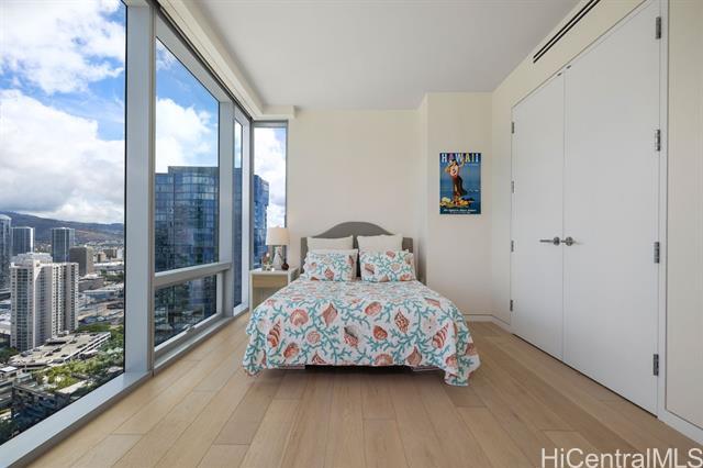 Waiea redefines modern luxury in Hawaii, located front row along Ala Moana Boulevard as the crown jewel of Honolulu's skyline. Its striking glass facade and thoughtfully designed interiors create a residence of unmatched sophistication, offering sweeping views and architectural elegance never before seen in the islands. This home perched high on the 29th floor, captures breathtaking views of Kewalo Yacht Harbor and provides a serene retreat above the city. Life here can be as tranquil or as vibrant as you chose. You might begin your mornings surfing at Ala Moana Beach Park just across the street, spend leisurely afternoons by the mesmerizing infinity pool, or enjoy high tea in the afternoon at Sunset Bar. Crawl up at its movie theater for the latest movies. Entertaining friends and family is easy in the elegant dining room and chef-inspired kitchen. Outdoor entertaining is equally effortless at the BBQ cabanas on the amenity deck. This two-bedroom/two-bath residence itself offers 1,468 square feet (136 m2) of spacious interior living, complimented by a private 68-square foot foyer and a generous 167-square foot lanai that frames panoramic views of both the ocean and the mountain.