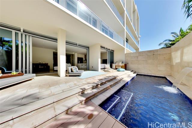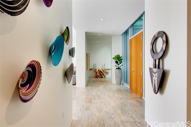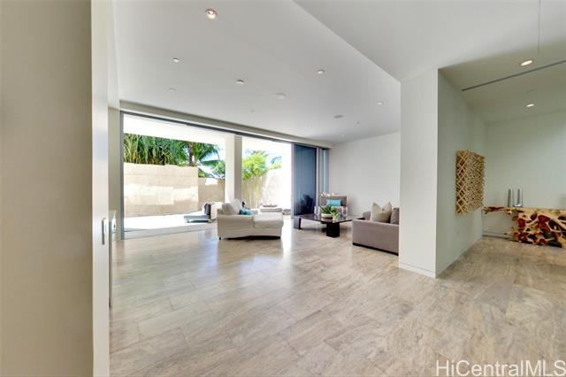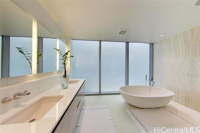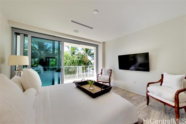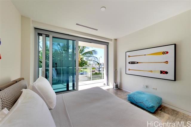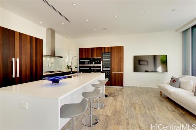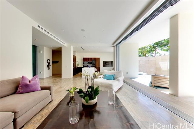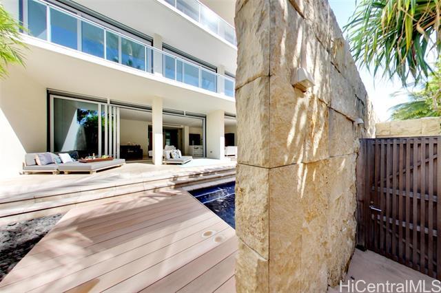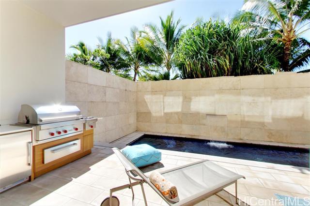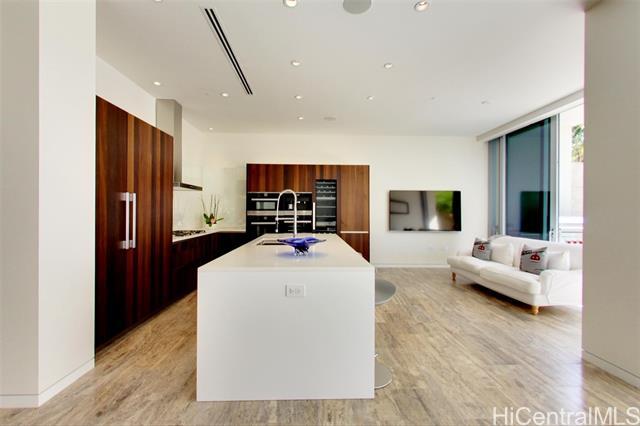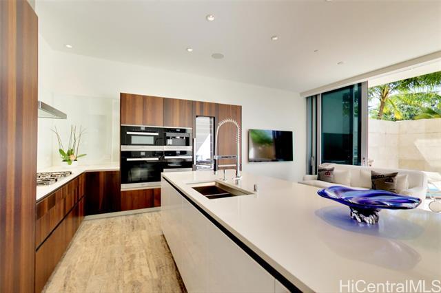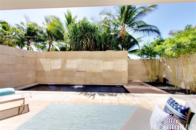 Villa 3 at Waiea is an exceptional ground-floor residence that truly feels brand new—immaculate, lightly lived-in, and meticulously maintained. This rare villa-style home offers a private entry garden and seamless indoor-outdoor living, ideal for both everyday comfort and elegant entertaining. The open floor plan is enhanced by over $250,000 in custom upgrades, including black sea travertine flooring, motorized shades, a Sonos sound system with in-ceiling speakers, and a pre-wired Lutron smart-home system. Offered fully furnished. The gourmet kitchen is appointed with like-new Miele appliances and refined contemporary finishes throughout. A private two-car garage completes the residence—pull directly into your garage and enjoy the experience of single-family living with full ultra-luxury condo services, exceptional privacy, and security. One of only five villa-style family homes in Ward Village, Villa 3 offers a rare opportunity to enjoy the comfort and privacy of a single-family home, paired with the convenience, services, and prestige of one of Honolulu’s most exclusive luxury residences. Waiea features only 171 residences, creating a rare low-density living experience.