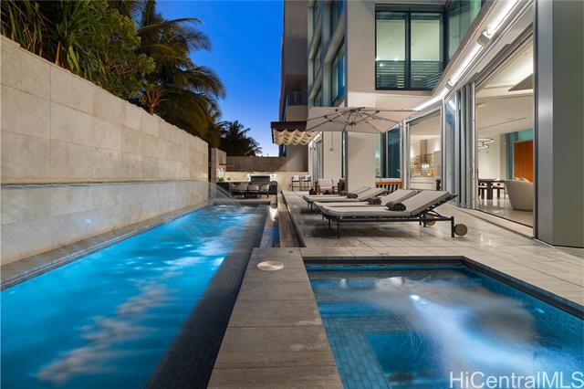 An expansive villa at Waiea, with all the elements of an estate within a condominium setting. Spanning five levels, it features a private pool and a drive-in garage, making this home one of a kind. Designed by the renowned architect James Cheng, with interiors by acclaimed designer Tony Ingrao & bespoke furnishings from Cantoni. LUXURY PROPERTY AUCTION with CONCIERGE AUCTIONS April 14-29. Accepting starting bids through April 13.