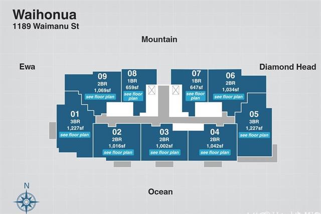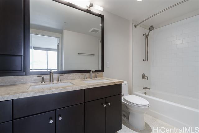 RARE FIND & PERFECT for multi-generational living or strong income potential in Kakaako—Honolulu’s most desirable neighborhood! One entry door leads to two separate units (3BD/2BA/2PK & 2BD/2BA/2PK) in this exceptional 28th-floor corner residence at luxurious Waihonua. Enjoy beautiful ocean, mountain, and city views through floor-to-ceiling windows, plus high-quality finishes including walnut hardwood floors, granite countertops, Bosch appliances, and motorized double shades. Ideally located between Ward Village and Ala Moana Shopping Center, offering unmatched convenience, walkability, and lifestyle. Truly a hidden gem with one of the best price-per-square-foot values in the area. Resort-style amenities include concierge service, theater, club room, pool, fitness center, BBQ pavilions, and guest suites. 2BD unit is vacant; 3BD unit rented at $5,100/mo through 6/28/26. Live in one and rent the other!