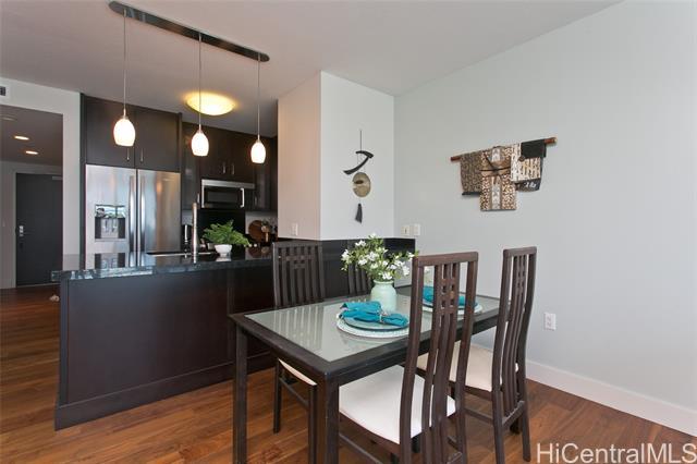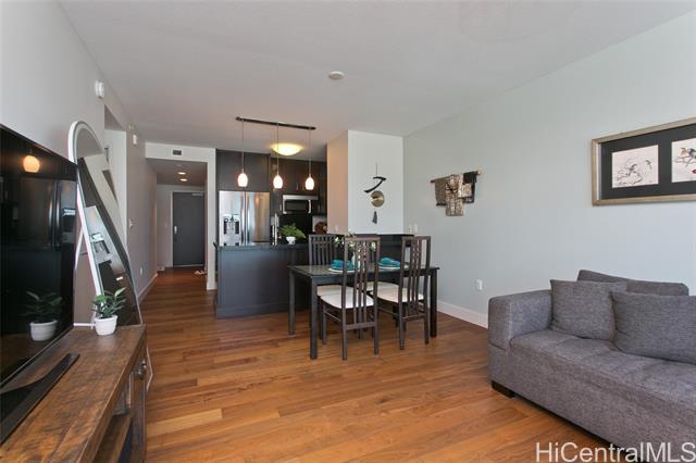Welcome to this beautifully maintained one bedroom residence at Waihonua, ideally located between Ala Moana and Ward Village. Enjoy cool mountain breezes and a peaceful outlook from this original unit, thoughtfully designed with an efficient layout that maximizes space and comfort. Just minutes from world class shopping, dining, beaches and everyday conveniences, the location offers the best of urban living. A rare highlights of this home is the inclusion of TWO PARKING stalls - one covered (1st Floor separate garage) and one uncovered (5th floor), along with two storage lockers and an additional locker above the ground floor parking stall. Ideal for those seeking convenience, extra storage, and not one, but TWO parking spaces, this residence presents a unique opportunity in a highly desirable building. Schedule your showing today.