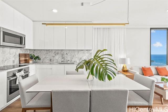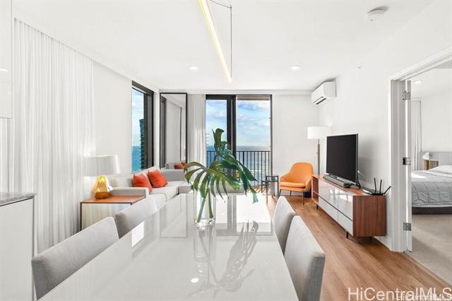 High floor unit at 'A'ali'i in Ward Village! Located in the popular ‘02 stack with beautiful ocean views, Unit #3602 is a beautiful 2 bed and 2 bath unit. Fully furnished, plus new mattresses, new carpet in both bedrooms, and new 800G waterdrop reverse osmosis system! Bright and modern with Bosch appliances. The unit offers 2 parking spaces and a storage unit located above the parking stall. 'A'ali'i offers excellent amenities for convenient resort-style living in Honolulu. Enjoy the spacious pool and private cabanas, fitness center, spa, yoga room, sky terrace, and BBQ grills, dog park and indoor/outdoor event spaces. Plus a kid’s play area and kid’s pool! Ideally located in the heart of Ward Village, 'A'ali'i is right by Whole Foods, popular restaurants, movie theater, farmers’ market, playgrounds, cafes, shopping, and so much more.