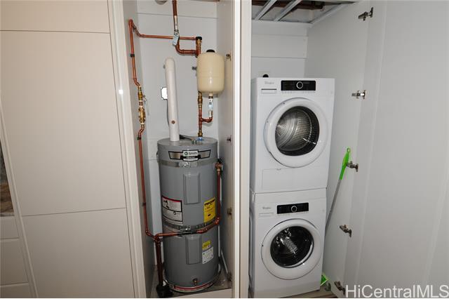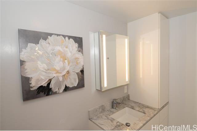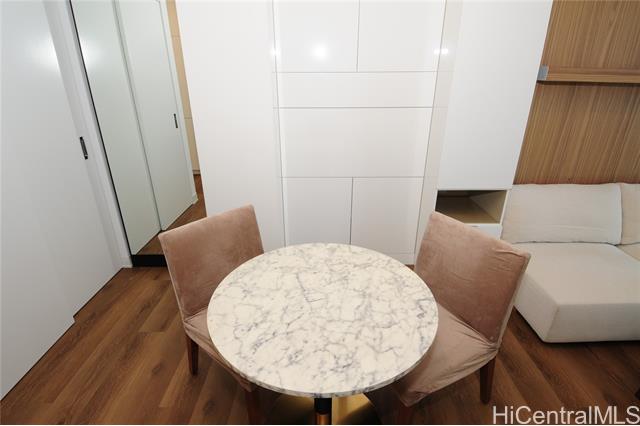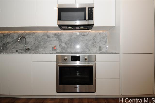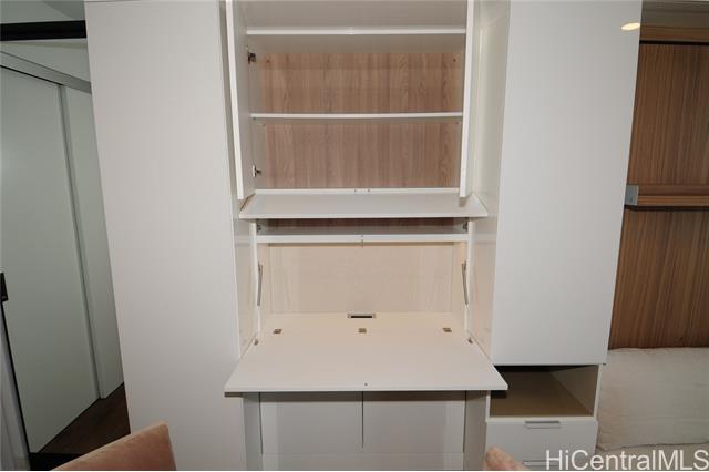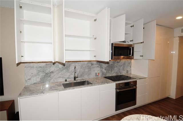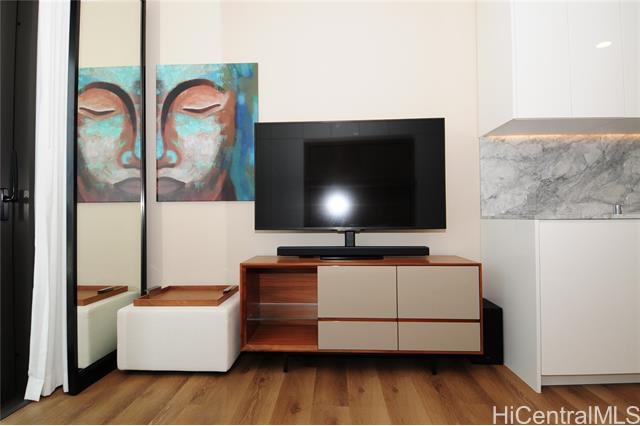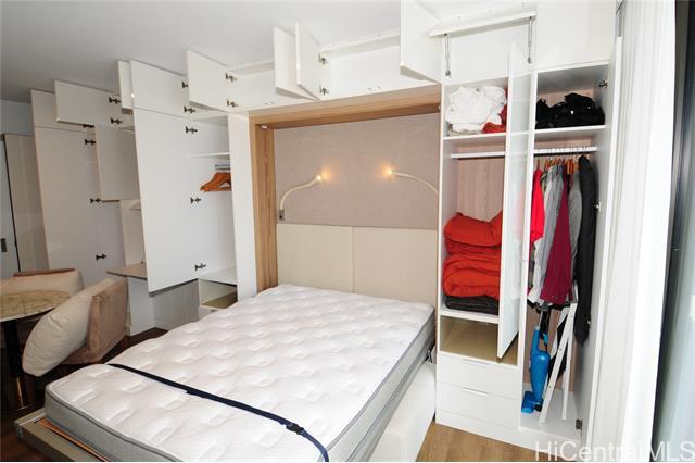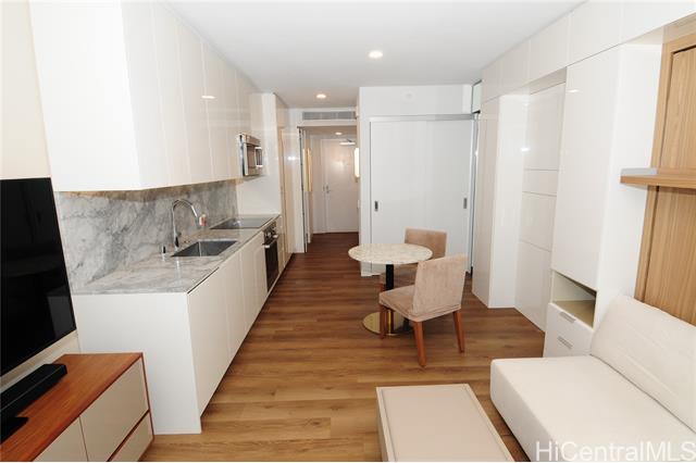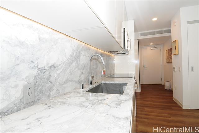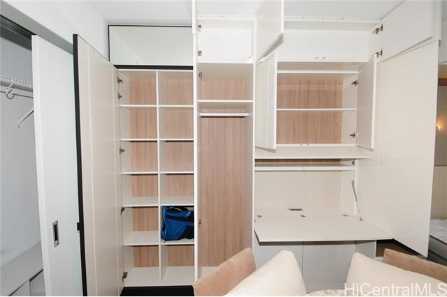 Turnkey unit includes the art! This unit features the best developer's package with all custom cabinets and more storage than most homes. Ultra efficient studio means you have everything you need and nothing you don't. Check the surf from your private lanai or head up to the roof top areas that are open to everyone in the building. This unit has barely been used and shows better than the day it was built. With luxury features like a work station, full sized kitchen w range, large hot water heater and in-unit laundry you won't need to leave for anything! Aalii has every amenity you could want in a luxury building. Rooftop public areas, large gym with all equipment, movie theatre, cabanas and pool side suites for use by reservation, and even surfboard storage and pet areas on the property. And if you ever choose to leave the building you're in the heart of Kakaako next to Whole Foods, new restaurants, movie theatre, and large park areas. And for the outdoor beach lovers you're across the street from the largest beach park in the state with all the surfing, sunning, and outdoor activities you would ever want. Don't miss this one, the best studio unit in Kakaako. Storage unit avail