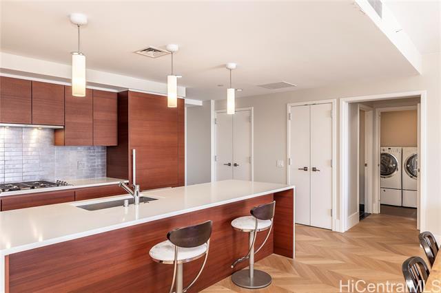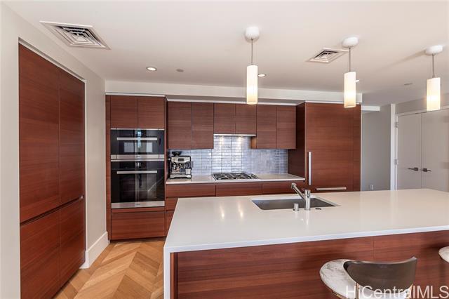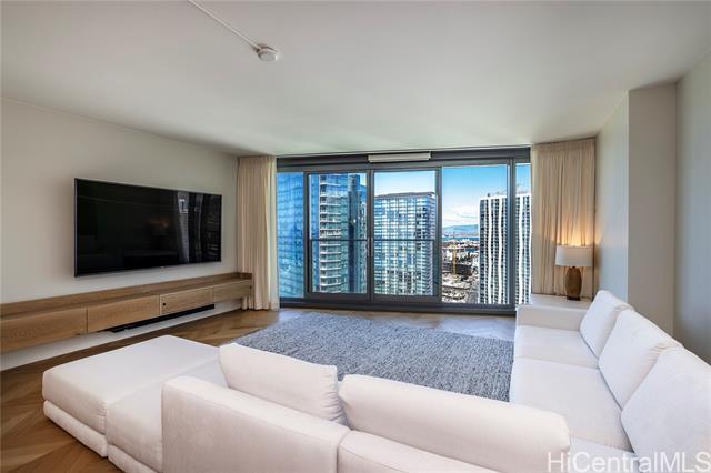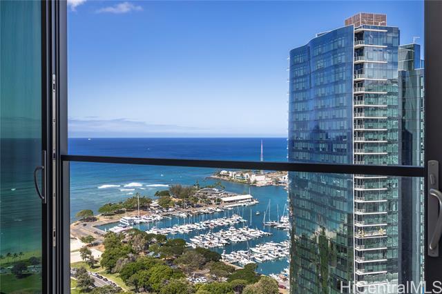 Experience refined luxury living at Anaha, Ward Village’s architectural masterpiece, with this stunning 30th-floor residence #3003. This spacious 2-bedroom, 2-bath home features expansive floor-to-ceiling windows that showcase breathtaking views of the Pacific Ocean, Ala Moana Beach Park, and the vibrant Honolulu skyline. The gourmet kitchen is equipped with Miele appliances, quartz countertops, and a large island—perfect for both casual dining and entertaining. The primary suite offers ocean vistas, a spa-like bathroom with soaking tub, and a generous walk-in closet. Anaha is known for its world-class amenities, including the iconic glass-bottom swimming pool, state-of-the-art fitness center, private dining rooms, golf simulator, theater, and full concierge services. Located in the heart of Ward Village, you’re just steps away from Whole Foods, fine dining, shopping, and Ala Moana Beach Park.