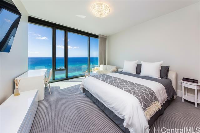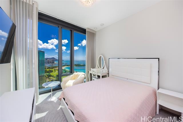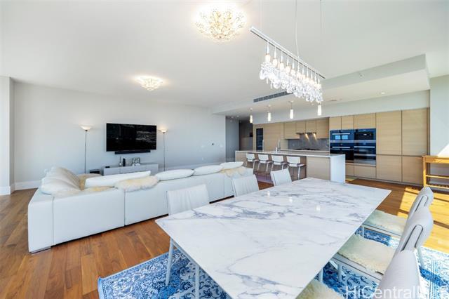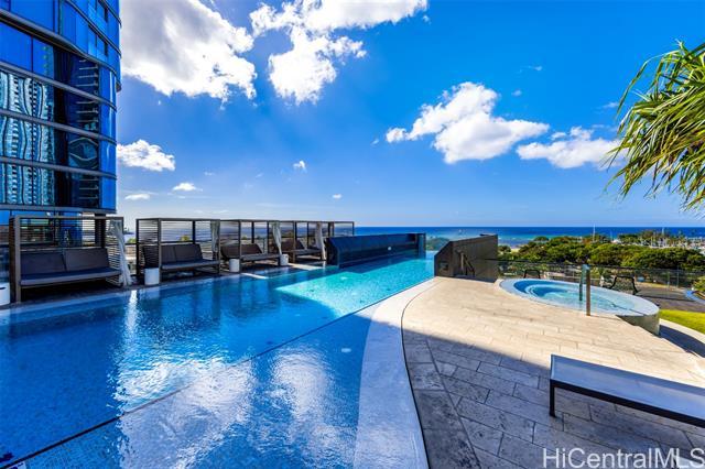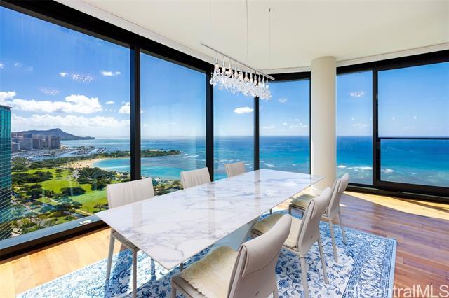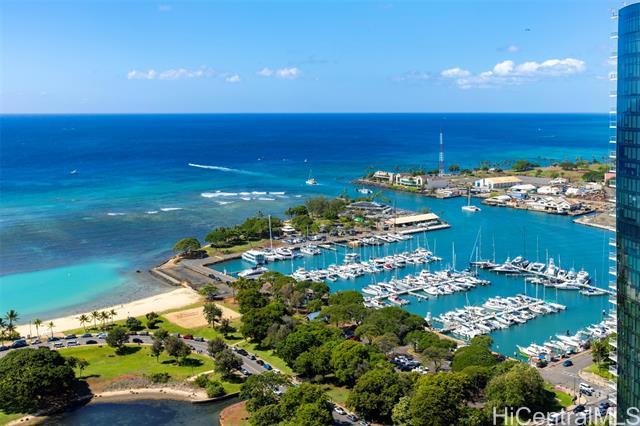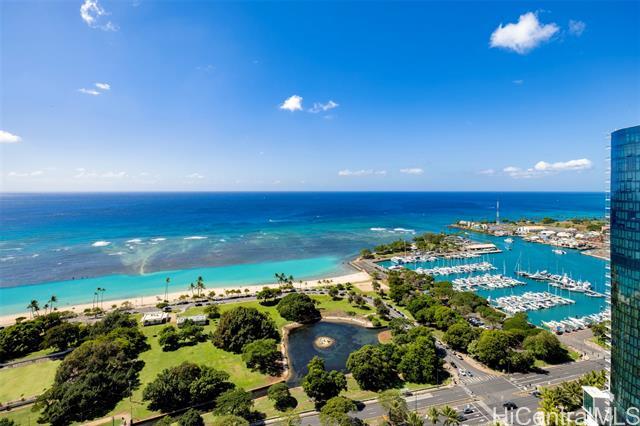 Anaha stands as one of Honolulu's premier ultra-luxury destinations, situated in award-winning Ward Village, where nearby shops, restaurants, entertainment, & sandy beaches are within blocks. This high-floor, rarely available front-corner 3-bedroom, 3.5-bath, 2,445 sq.ft. residence sits just under the Penthouse-level & features higher ceilings, unique to the 33rd floor & Penthouse suites. Inside, panoramic floor-to-ceiling windows in the open-concept luxury living space draw in views from Diamond Head & Waikiki, to Ala Moana Beach Park & Kewalo Boat Harbor. The primary bedroom enjoys stunning Pacific Ocean & Beach Park views, & includes a large walk-in closet & resort ensuite bath. Two additional bedrooms enjoy Diamond Head & Pacific Ocean views. This residence is sold with an additional storage room & EV charger. Anaha features a host of resort amenities including an iconic infinity-edge pool with a transparent overhang, a full-size tennis court/pickleball courts, volleyball court, multiple barbecue areas, kid's play area, golf simulation, billiards room, movie theater room, chef's kitchen, & much more. Listing includes enhanced photos.