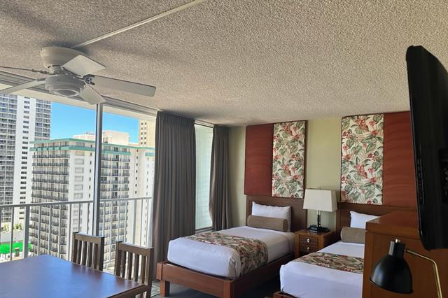 RESORT HOTEL ZONED condo approved for daily rentals. Diamond Head side facing studio. Popular Resort with rooftop recreation deck including swimming pool, whirlpool, BBQ area and Panoramic Views. Penthouse level recreation room and sauna. Enjoy, while only being a short walk to world famous Waikiki Beach and all the night life!