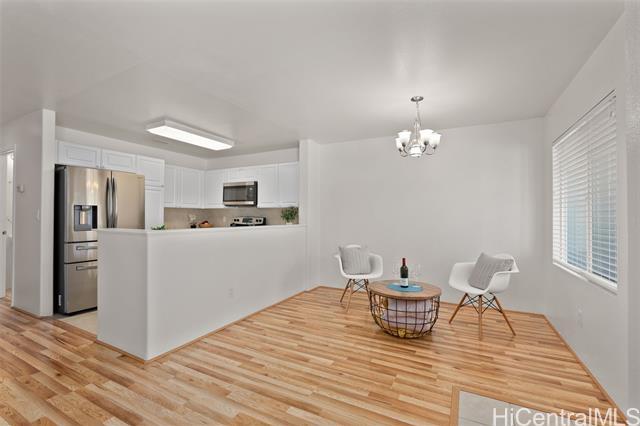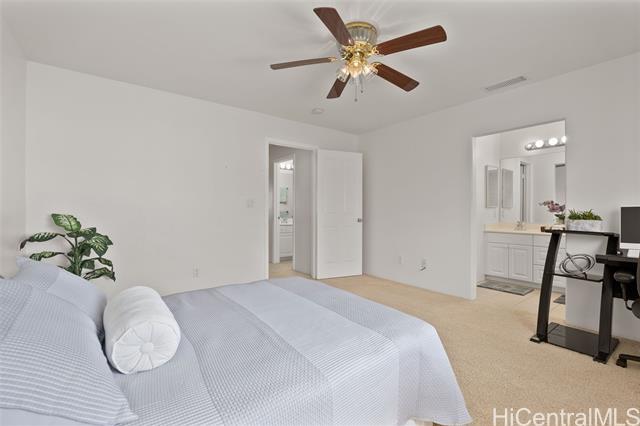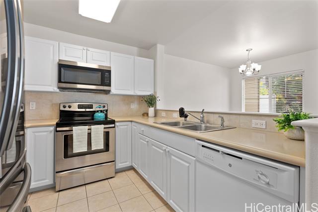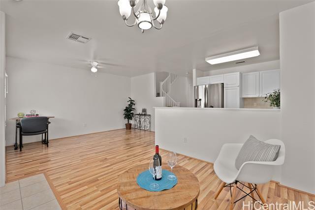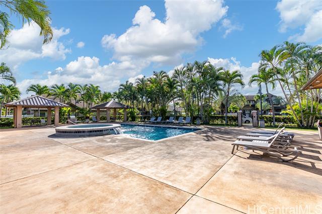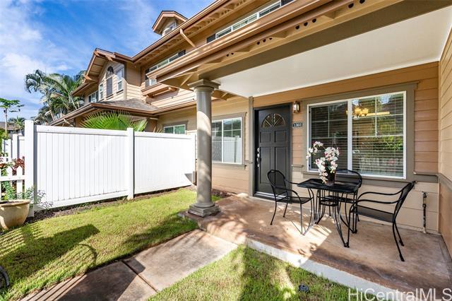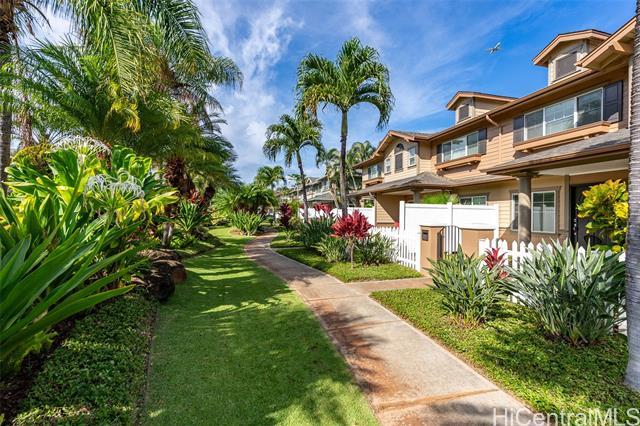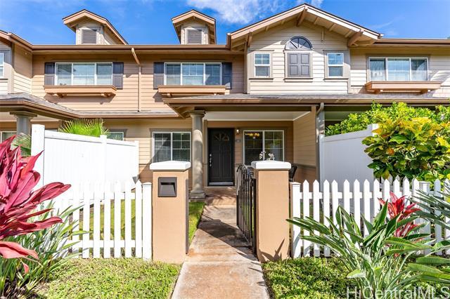 NEW LISTING! Immaculate 3 bed, 2.5 bath townhome with an incredible 2.25% VA ASSUMABLE RATE and garden, mountain views! This move-in-ready gem at Town Homes at Fairways Edge features a bright, functional floorplan, central AC and newer interior paint. First floor offers an open living area, half bath and kitchen with Corian counters, tile backsplash, NEW Samsung refrigerator and NEW microwave hood. Enjoy indoor-outdoor living with a fenced, grassy yard and a covered lanai - perfect for relaxing, entertaining and pets. Upstairs are 3 bedrooms and 2 full baths, including an expansive primary suite with walk-in closet. LG Washer (brand new) and dryer are located in the spacious 2-car garage, with guest parking nearby. Set in a peaceful, lush, park-like community with walking paths and wonderful amenities including pool, BBQ cabanas and rec center. Conveniently located near Ka Makana Alii mall, beaches, golf courses, schools, dining and more! Exceptional value in Ocean Pointe, one of Ewa’s most sought-after communities. Don’t miss this one!