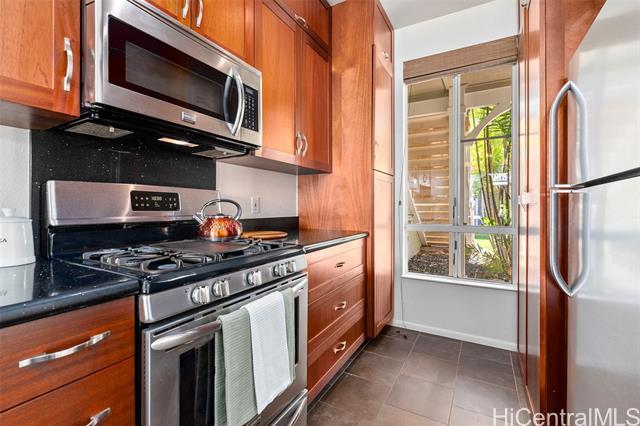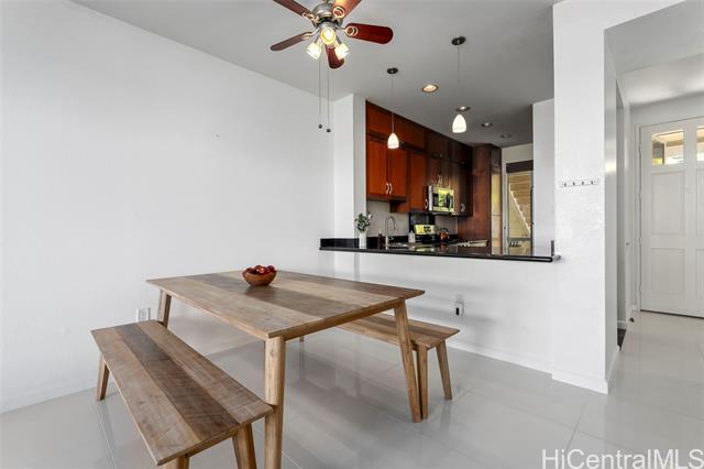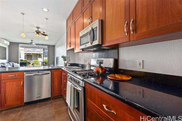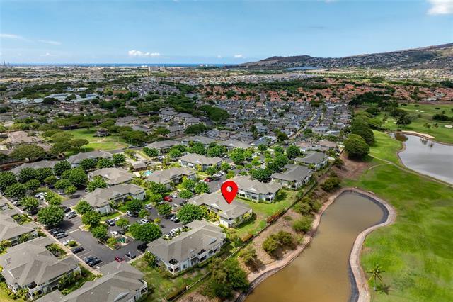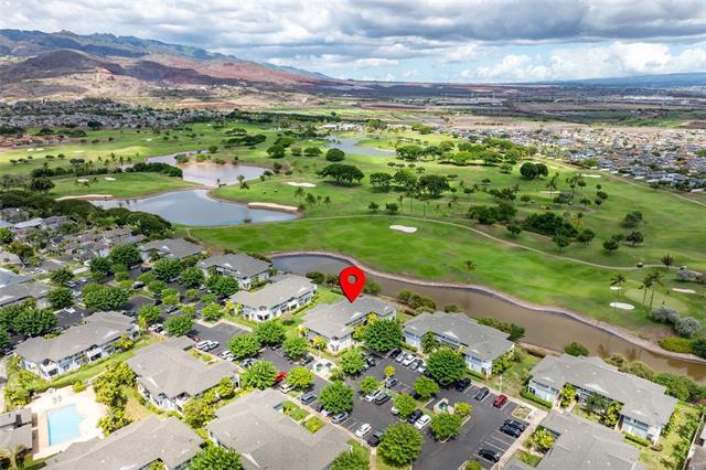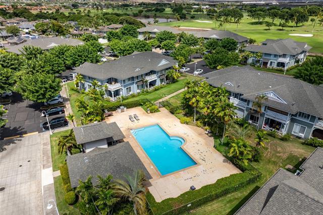 Don’t miss this gorgeously updated ground-floor townhome in the well-maintained Kekuilani Villas. This delightful 2-bedroom, 1-bathroom home with 2 assigned parking stalls features desirable golf course views overlooking Kapolei Golf Course. Inside, enjoy an updated kitchen and bathrooms, tile flooring throughout, and high ceilings that create a bright and airy atmosphere. Residents also enjoy access to community amenities including a pool and BBQ area, along with ample guest parking for family and friends. Conveniently located near Ka Makana Ali‘i Mall, shops, eateries, boutiques, daily necessities, and the rail, this move-in ready home offers the perfect blend of comfort and lifestyle.
