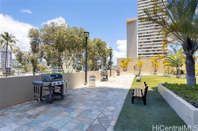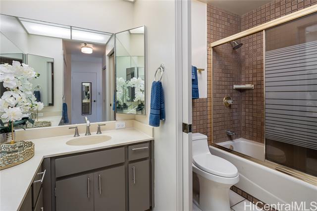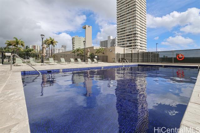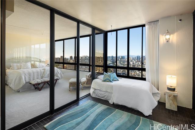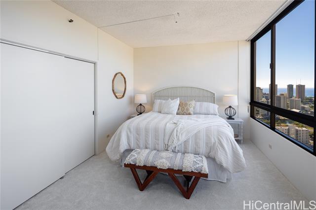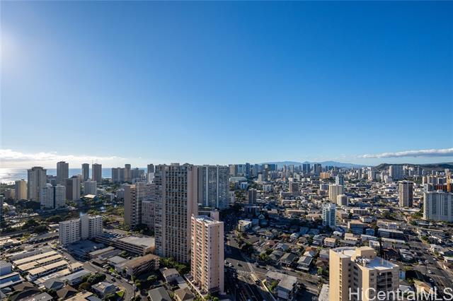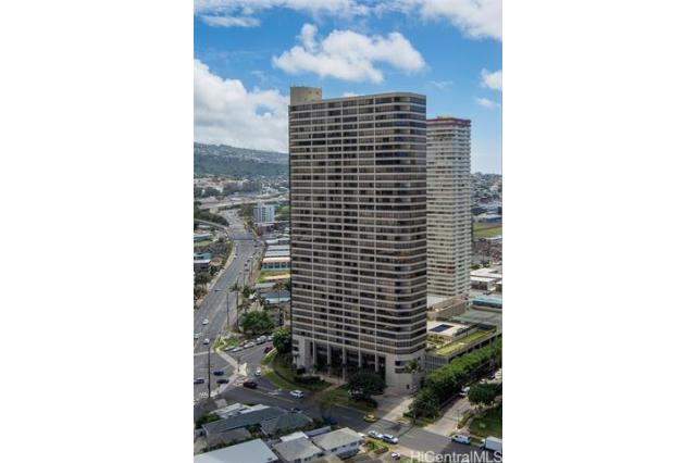 Now is your chance to own this one-of-a-kind, PH unit in Iolani Court Plaza! This unique and spacious 38th floor, 1081sf 1bedroom/1 bath unit comes with TWO full-size, side-by-side parking stalls. The PH floors have high 9’ ceilings, and a gorgeous glass line spans the entire length of this unit to offer beautiful mountain-to-ocean views. A 163sf enclosed glass den can be used as a second bedroom, office or craft studio - or, perhaps open up the space to enlarge the entire unit. Upgrades include brand new carpet, new stainless steel kitchen appliances, and fresh paint throughout. Central AC keeps the unit nice and cool, and electricity is included with the fee. The building has sprinklers to comply with fire safety regulations. Iolani Court Plaza features a variety of amenities - pool, jacuzzi, BBQ grills, recreation room, grassy lounge area, tennis courts, pickleball court and a putting green. The building is conveniently located near restaurants and shopping at Moiliili, McCully and UH Manoa. It is also near the freeway on and off ramps, and by Iolani School.